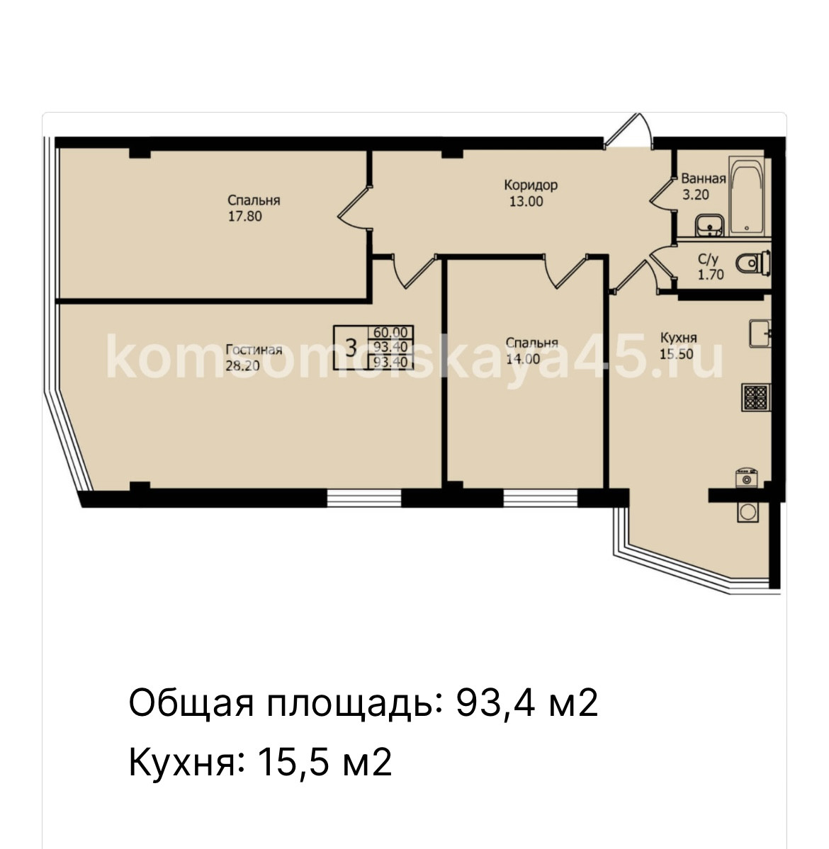 Общая площадь 93.2 м2