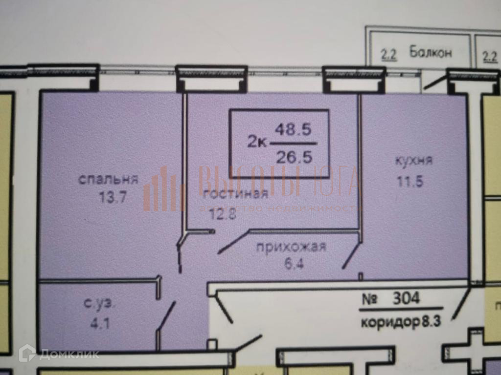 2-комнатная квартира, 52.1 м2, этаж 6 / 6, на продажу в Ставрополе, Пригородная улица, 251А