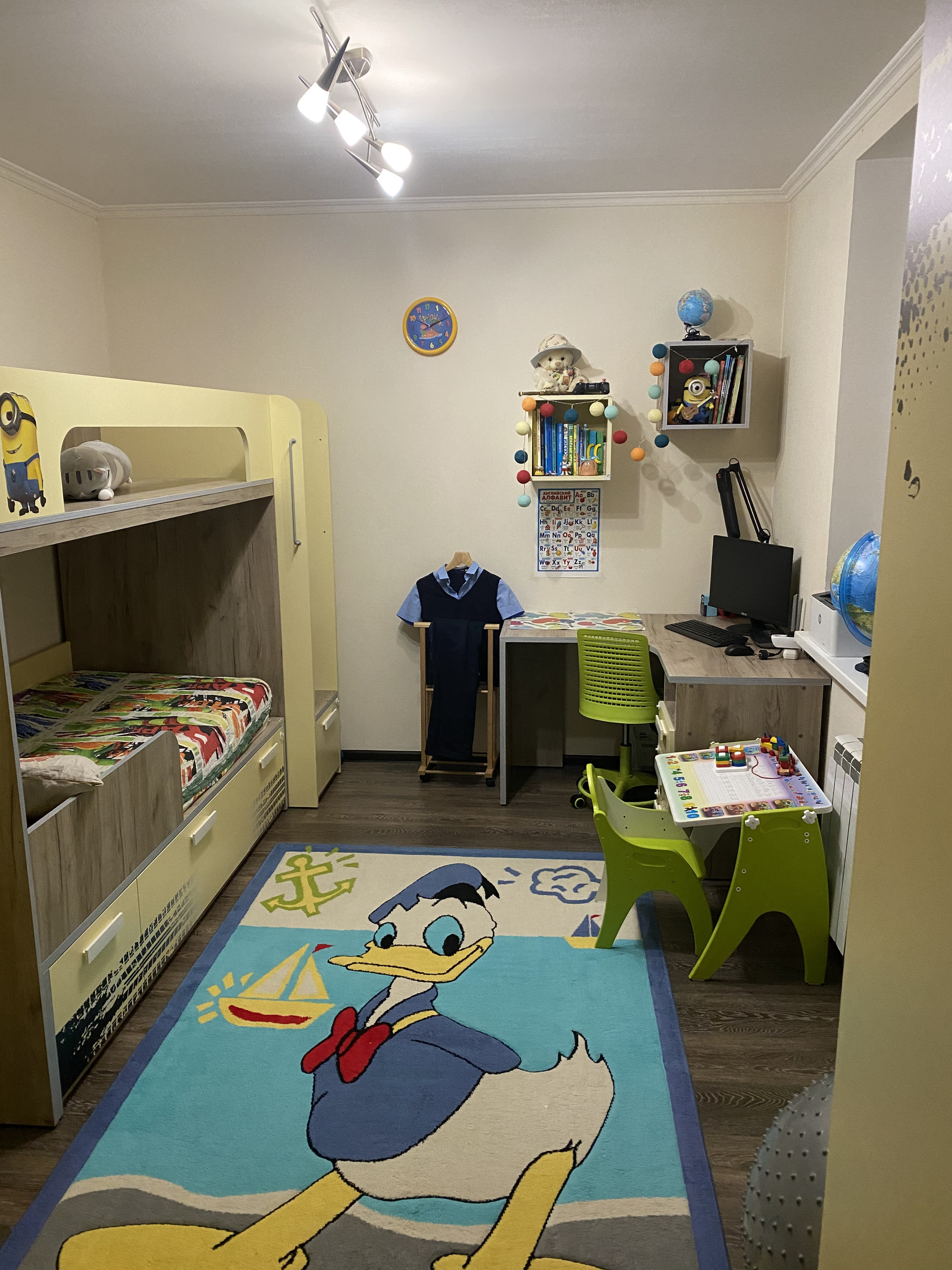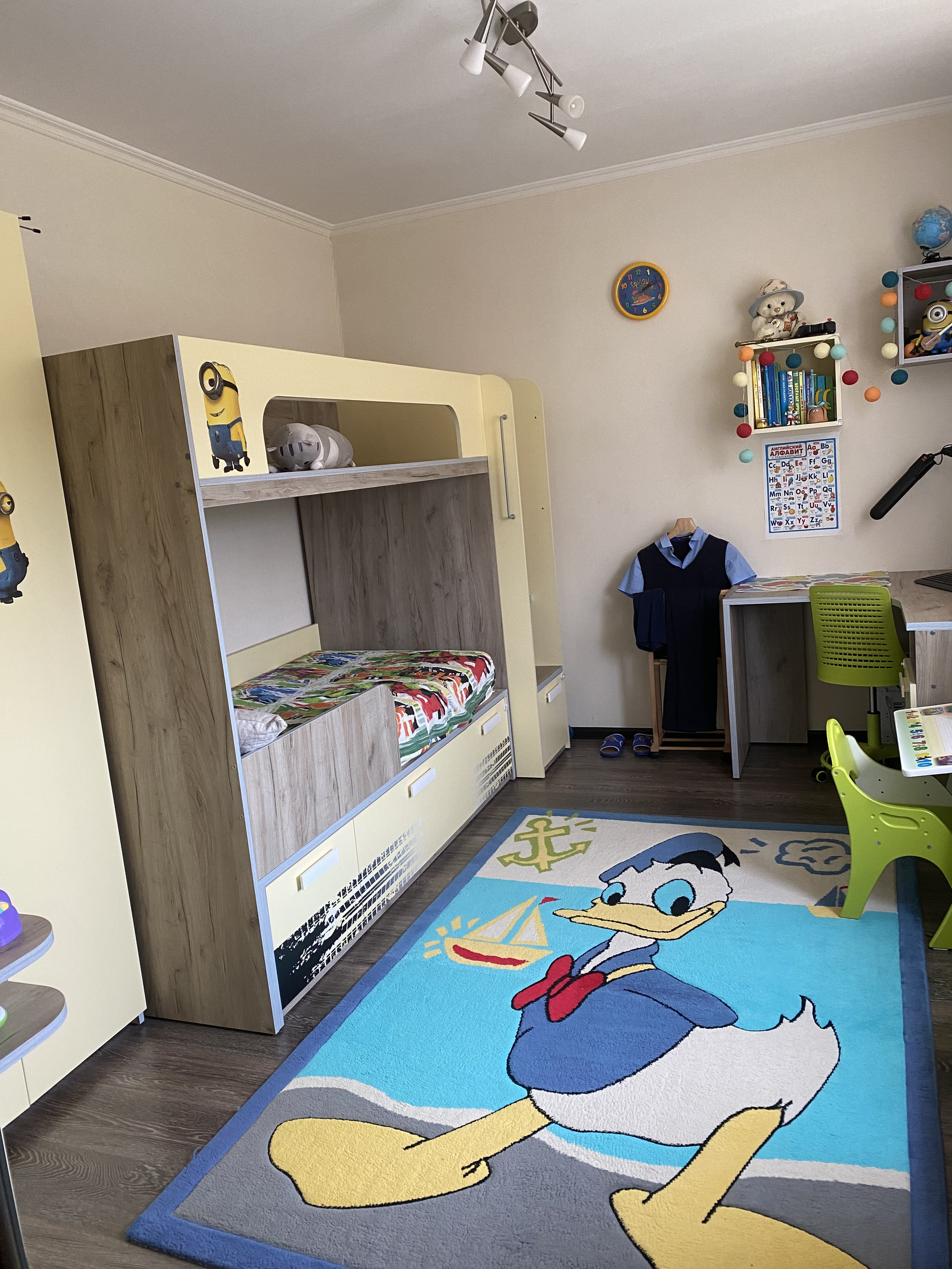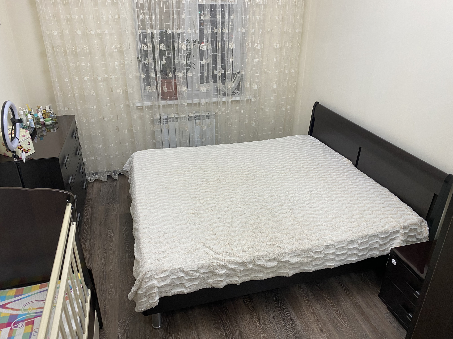 В квартире остается встроенная кухня (фирма Дедал Сервис - качество на высоте!), холодильник фирмы Haier под цвет гарнитура, очень вместительный встроенный шкаф-купе (фирма Командор). Спальный и детский гарнитуры по договоренности.