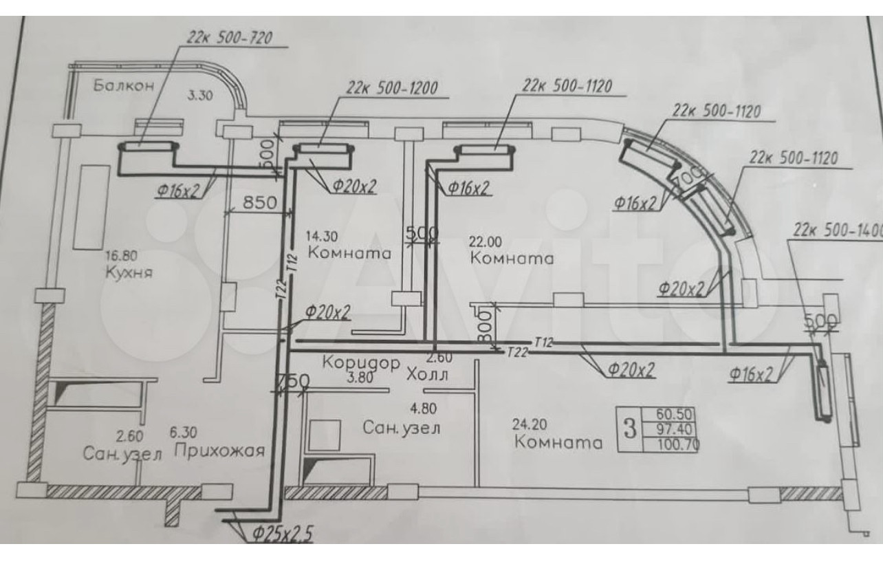 Высота потолков 3.3 м