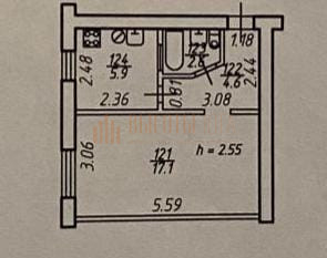 Жилая площадь 17.1 м2