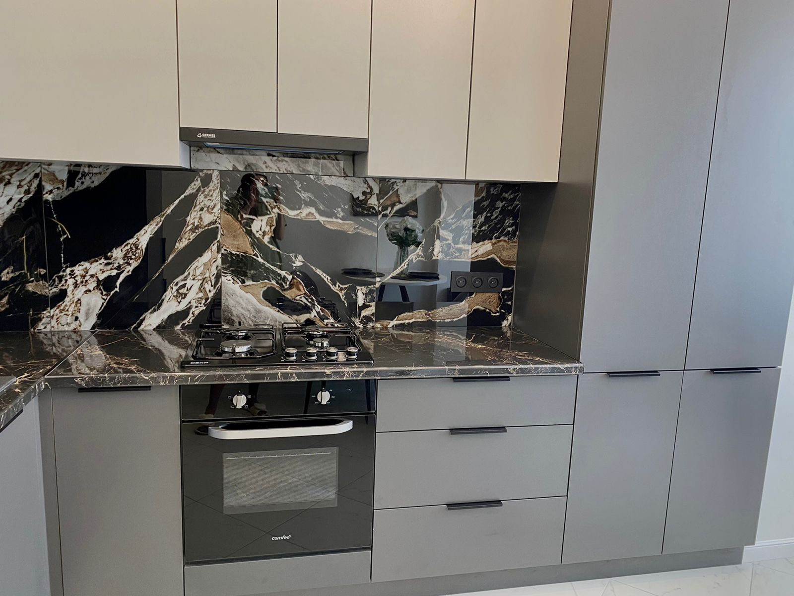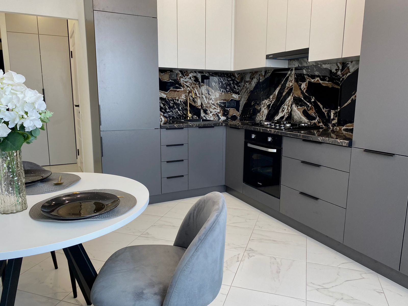 Квартира полностью оснащена новой бытовой техникой: встраиваемый холодильник, стиральная машина, духовой шкаф, варочная поверхность, вытяжка!