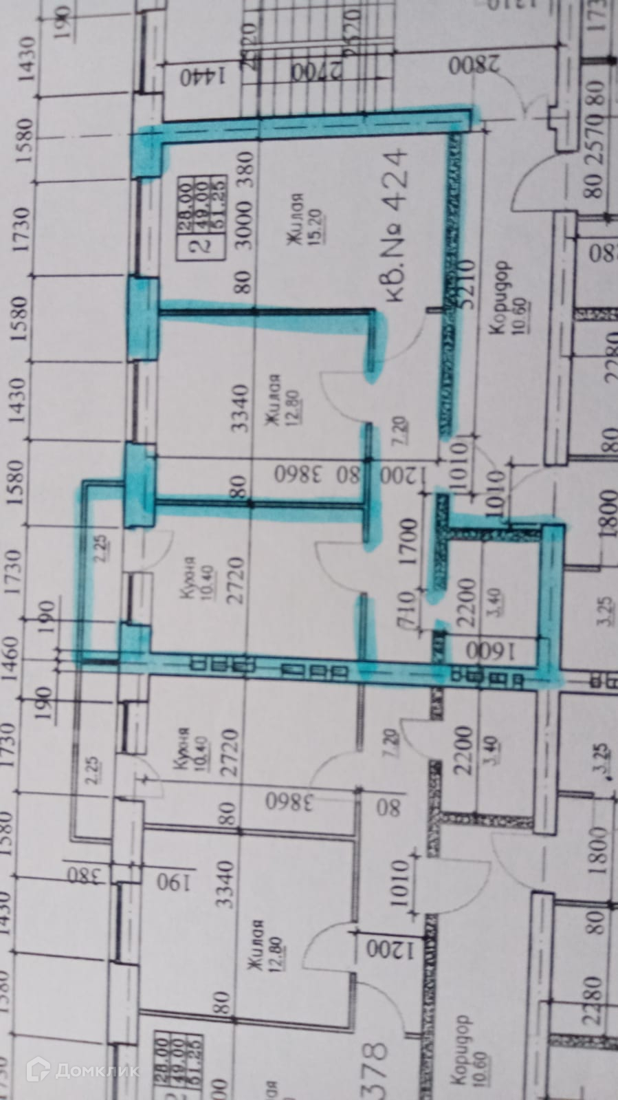 Общая площадь 52 м2