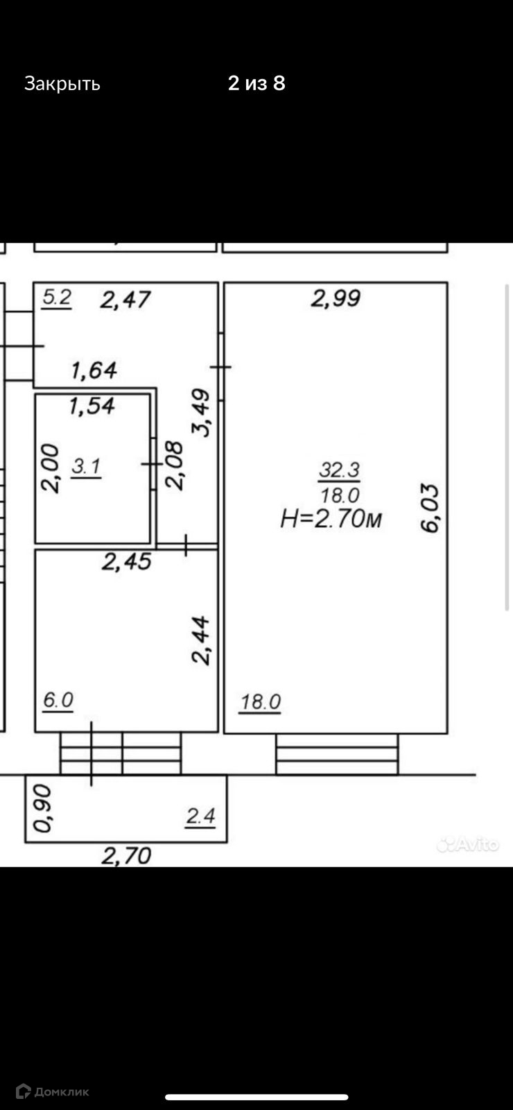Общая площадь 32.3 м2