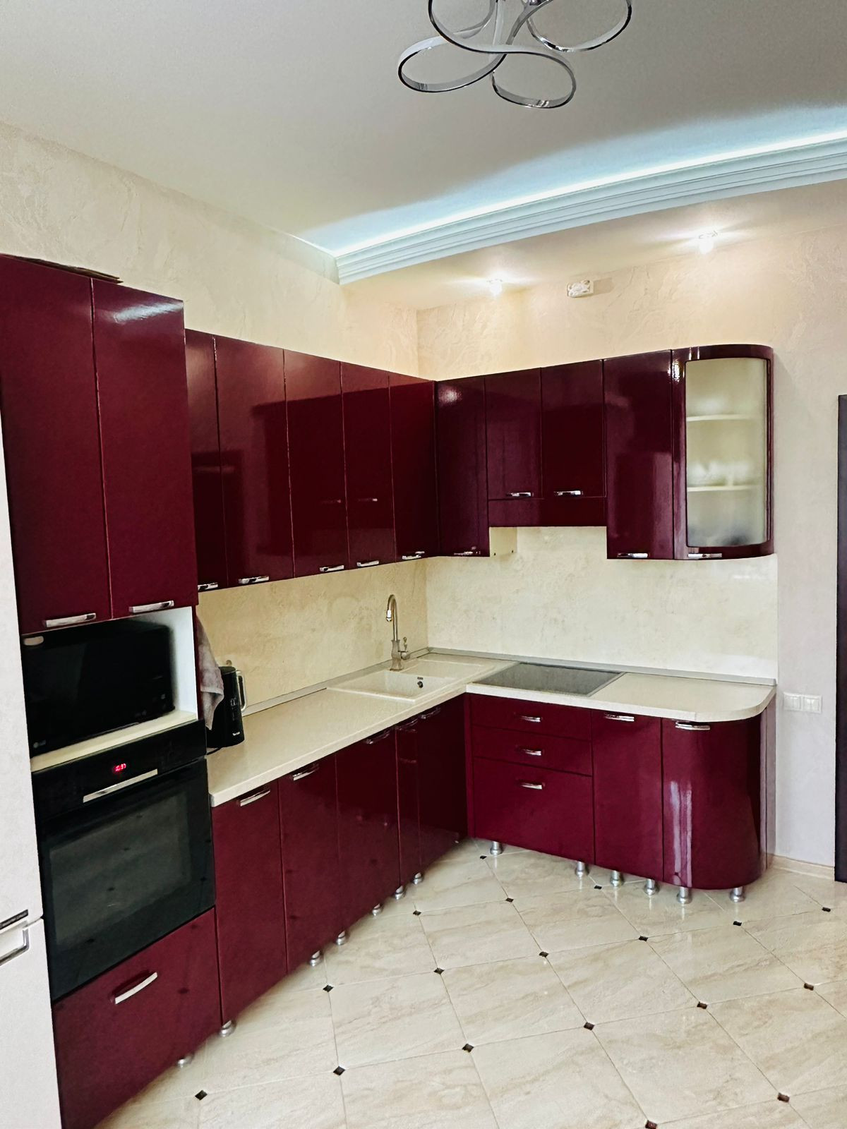 В квартире выполнен ремонт из дорогостоящих материалов (паркетная доска, плитка KeramaMarazzi, бронзовые вставки между плиткой, гипсокартоновые потолки, новая входная дверь).