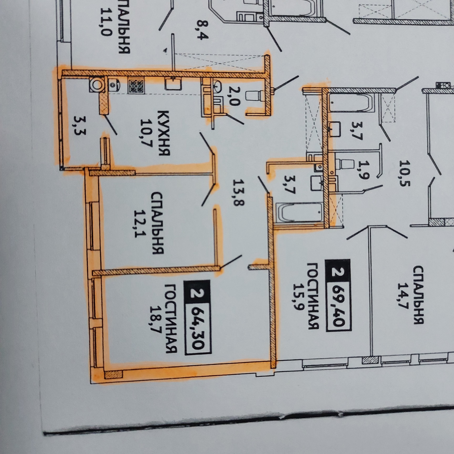 Общая площадь 64 м2