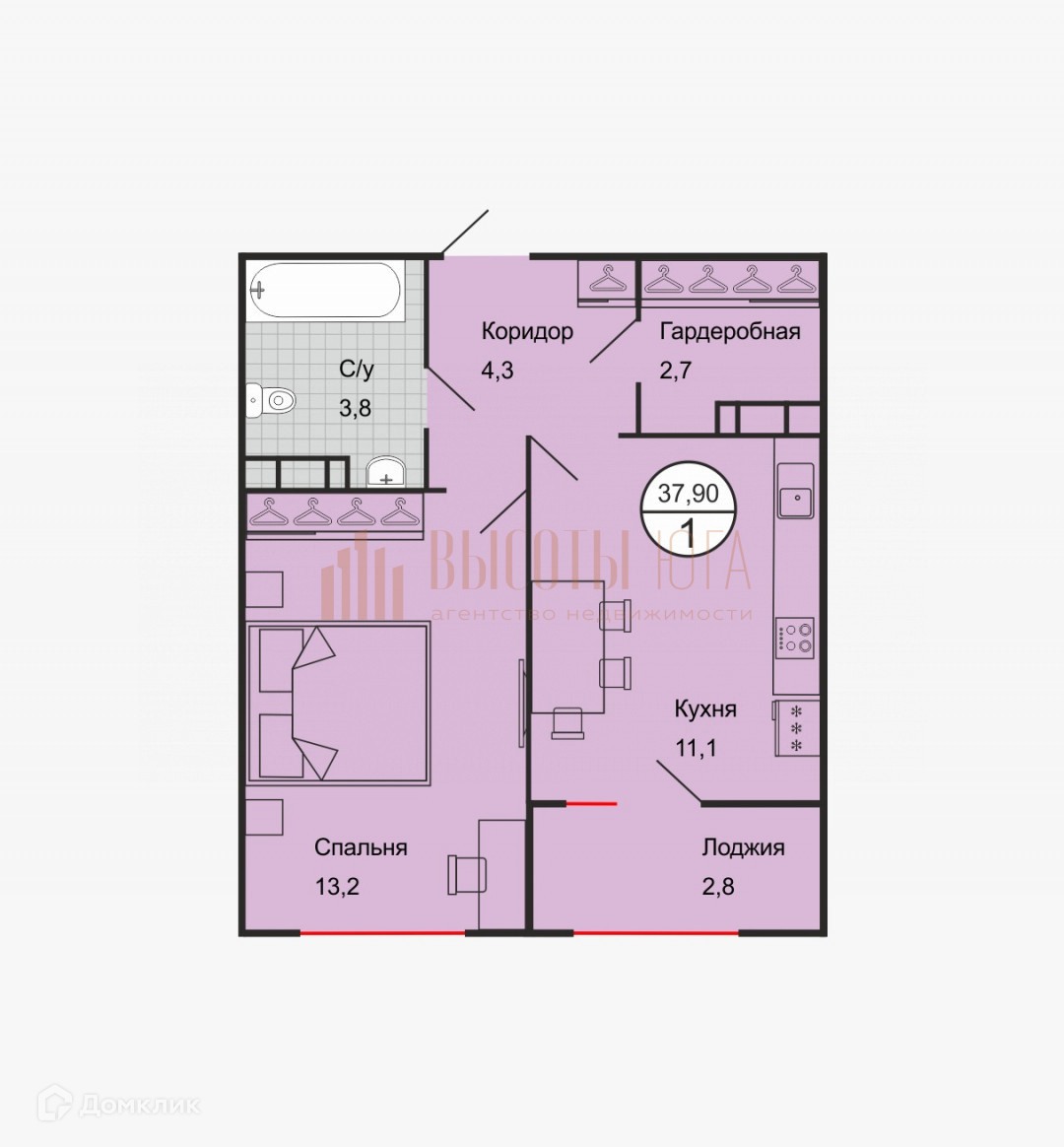 Общая площадь 38 м2