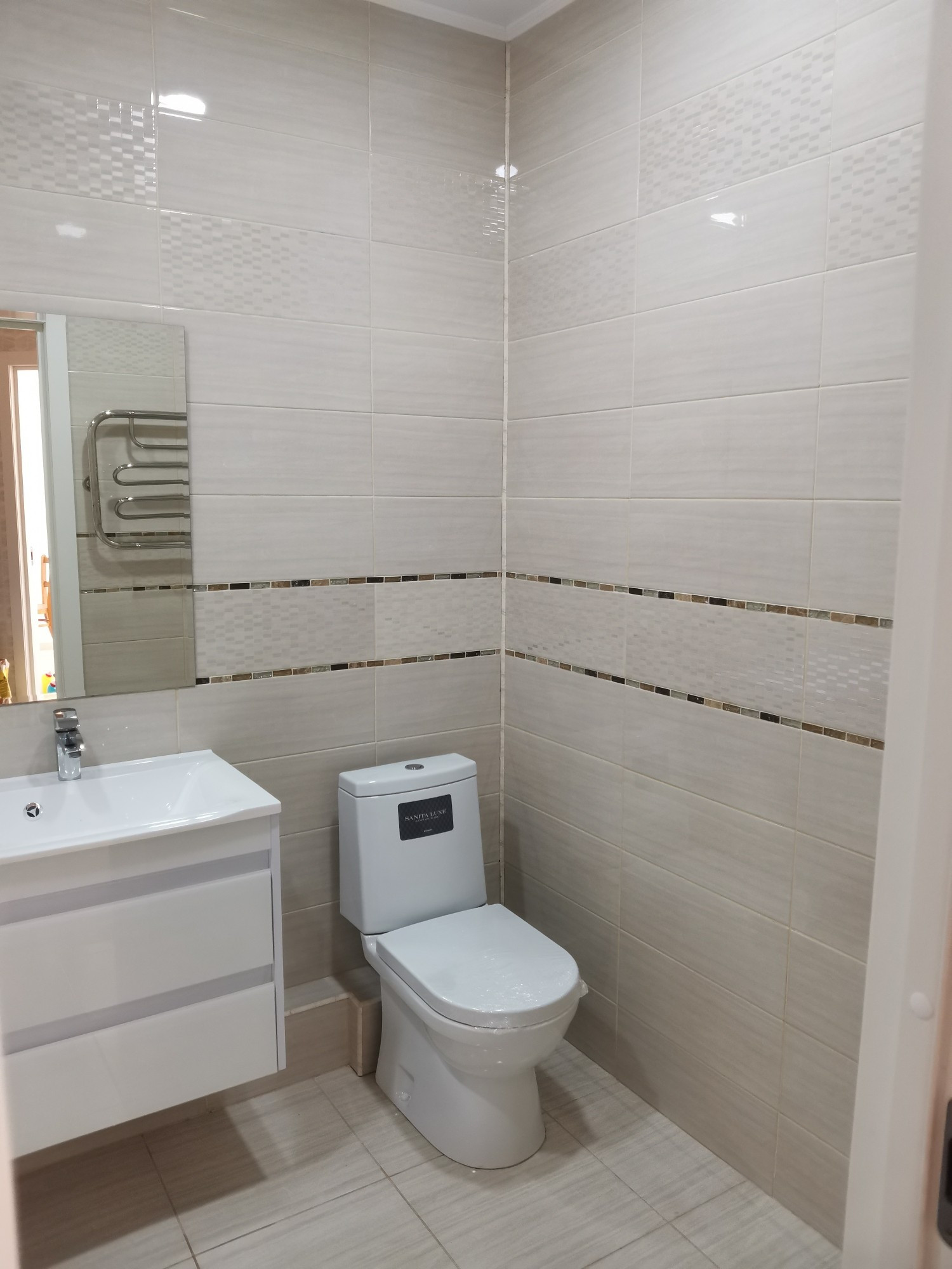 Тёплый пол на кухне и в санузле.