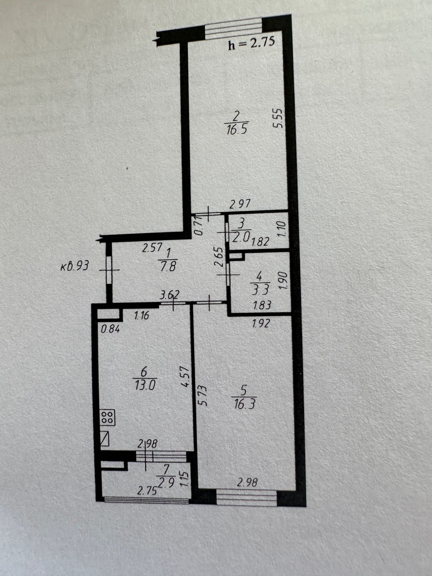Высота потолков 2.75 м