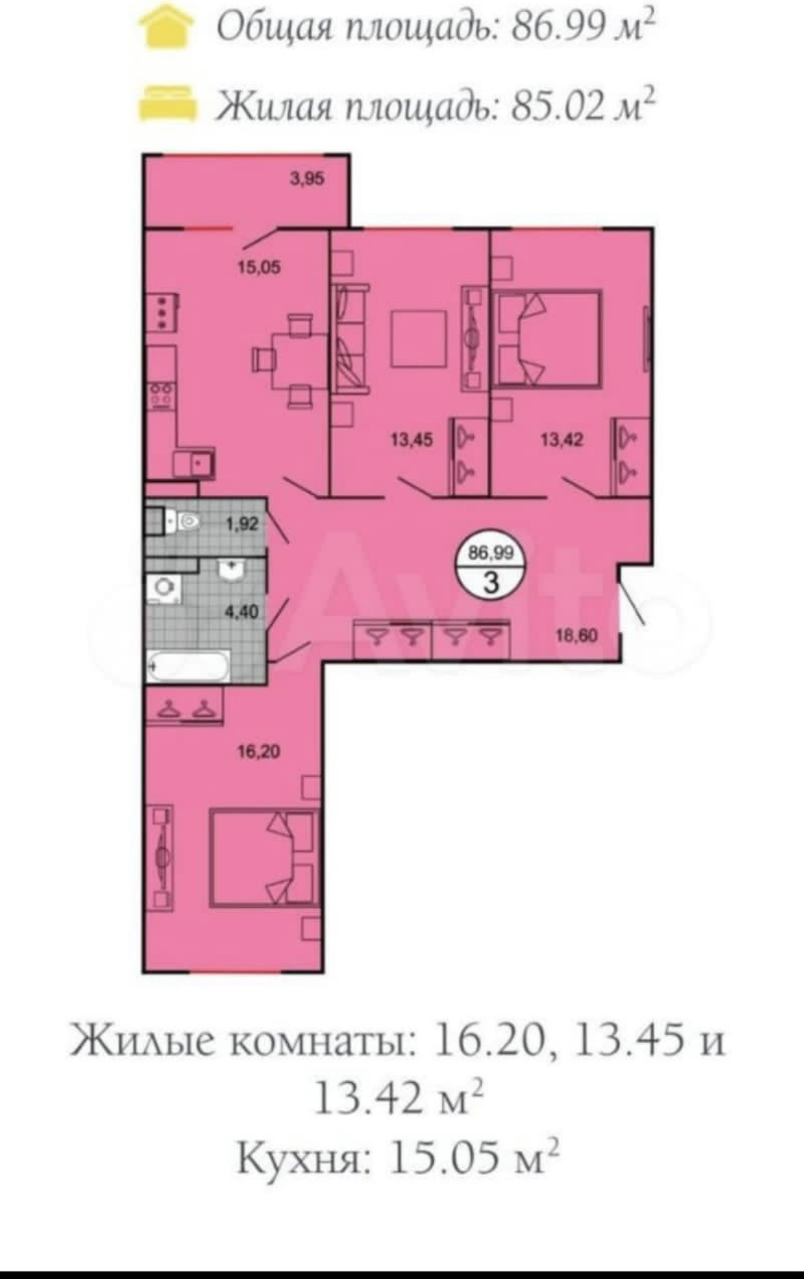 Общая площадь 87 м2