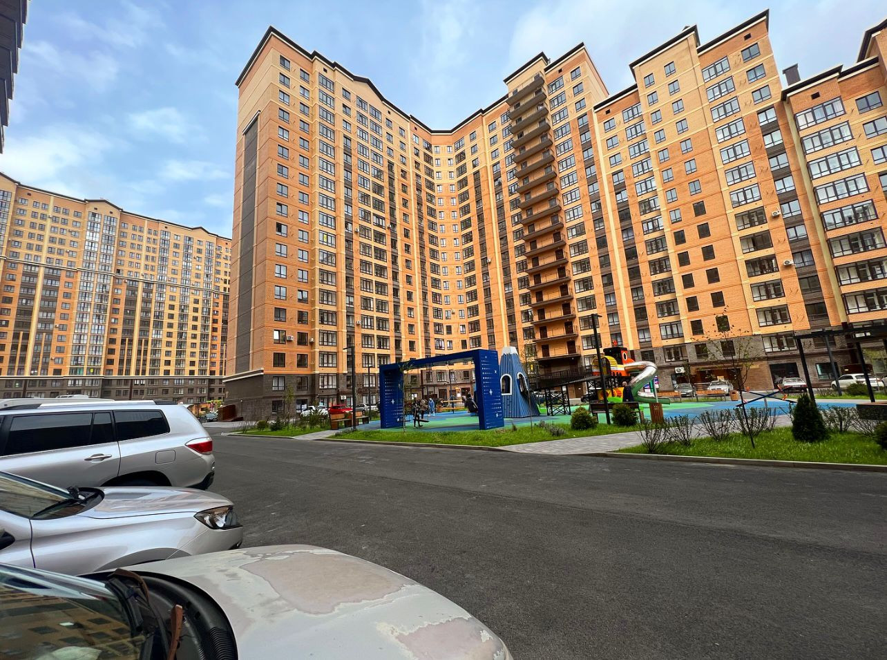Во дворе детские и спортивные площадки.