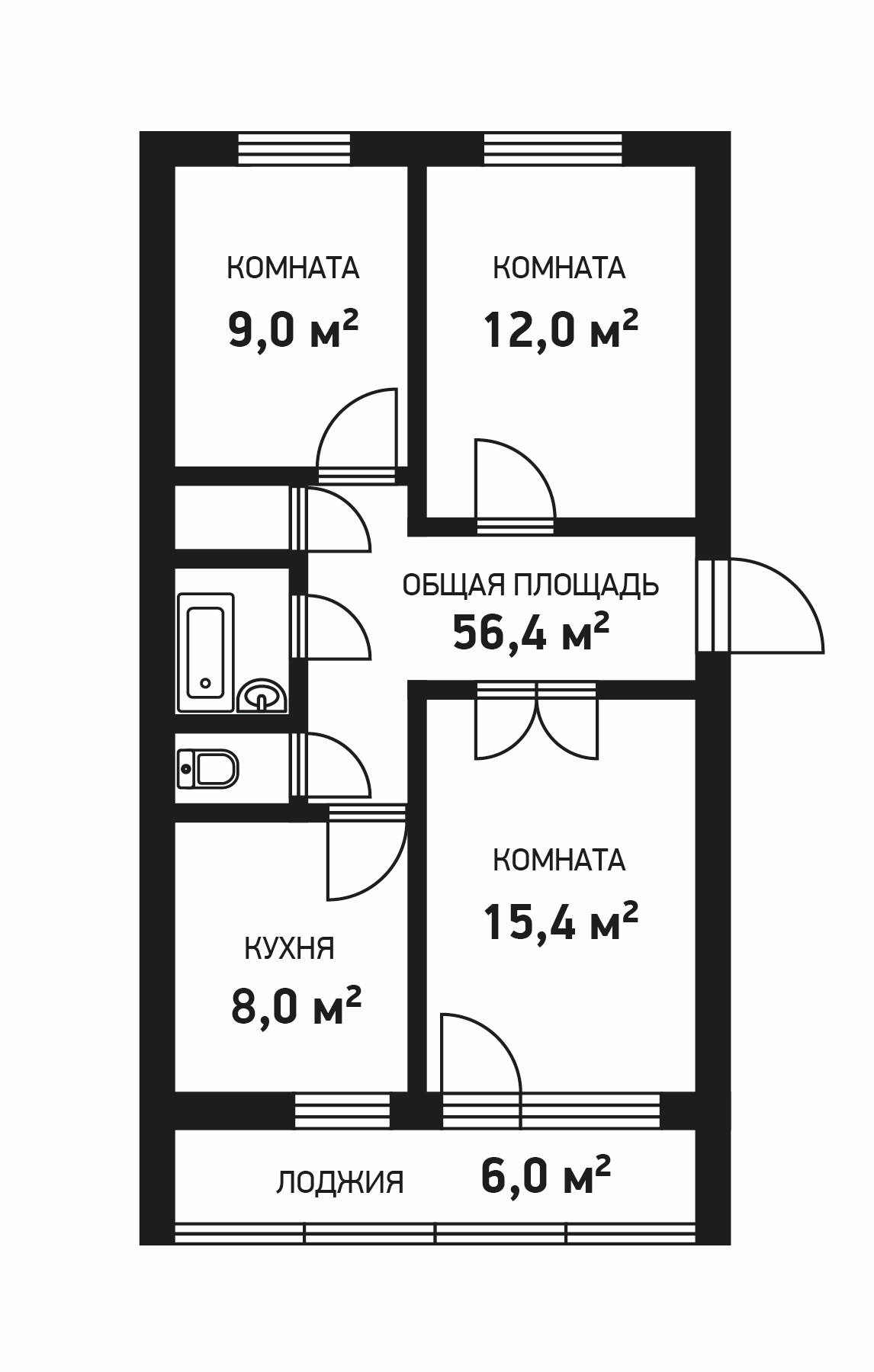 Общая площадь 56.4 м2