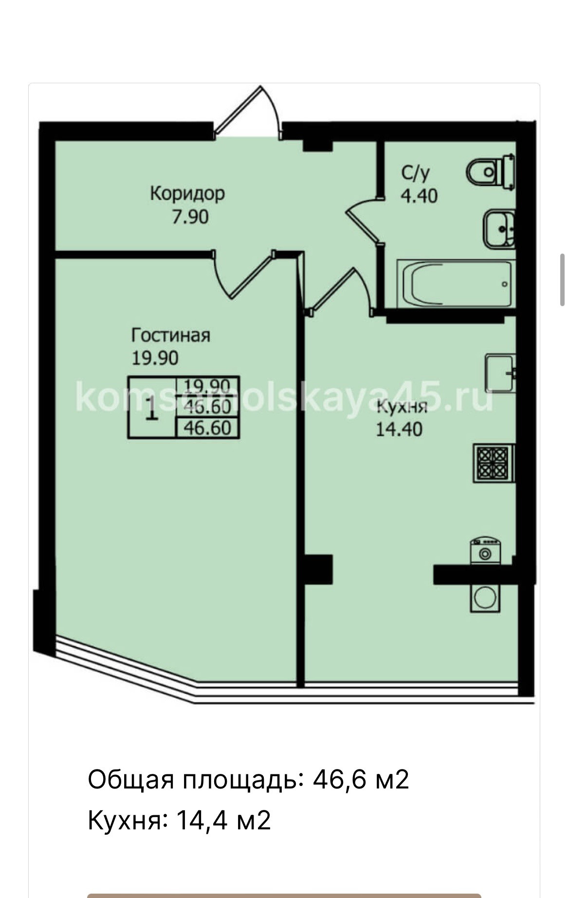 Общая площадь 46 м2