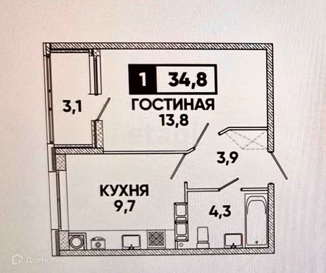 1-комнатная квартира, 37 м2, этаж 7 / 16, на продажу в Ставрополе, Родосская улица, 13с3