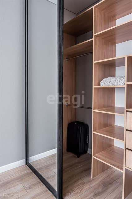 По индивидуальному заказу изготовлена кухня, шкаф-купе в зоне гардеробной.