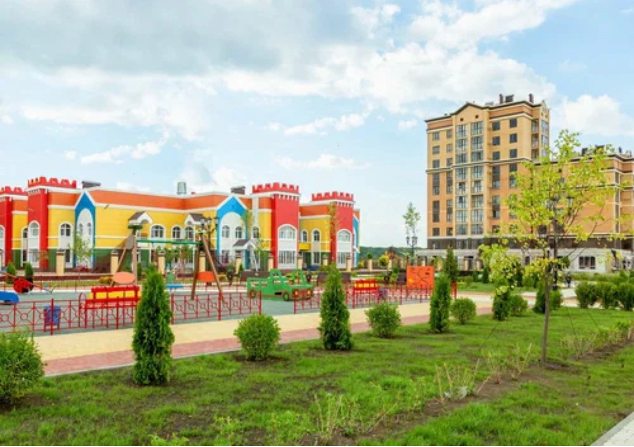 Уникальные современные детские площадки, а также очень крутые прогулочные территории!