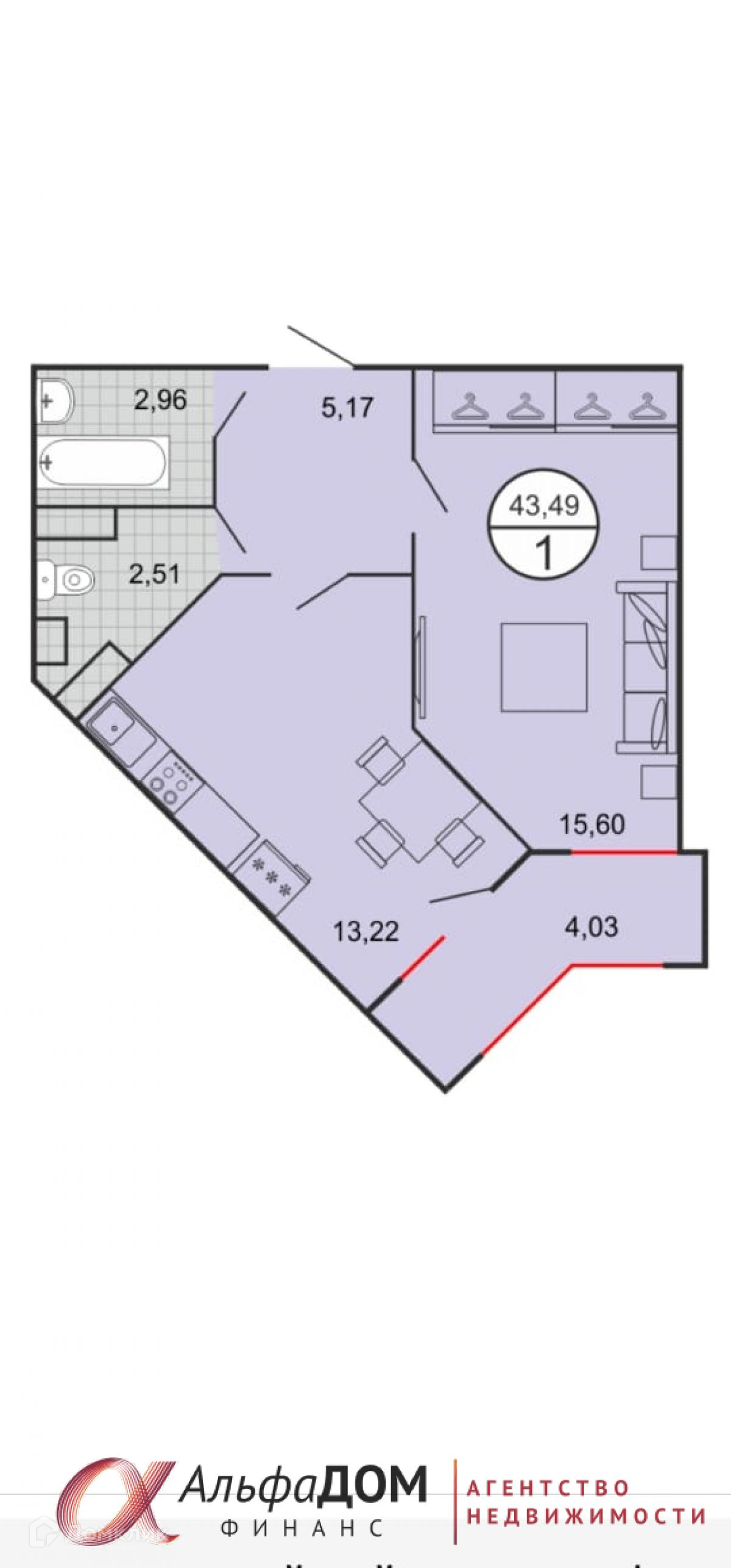 Общая площадь 43.4 м2