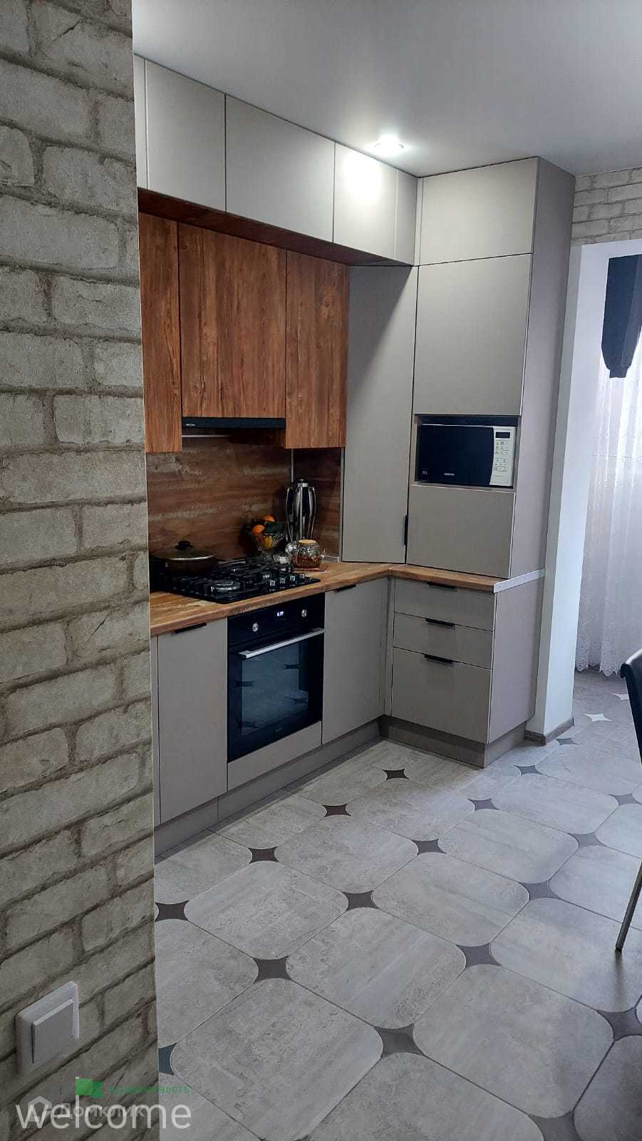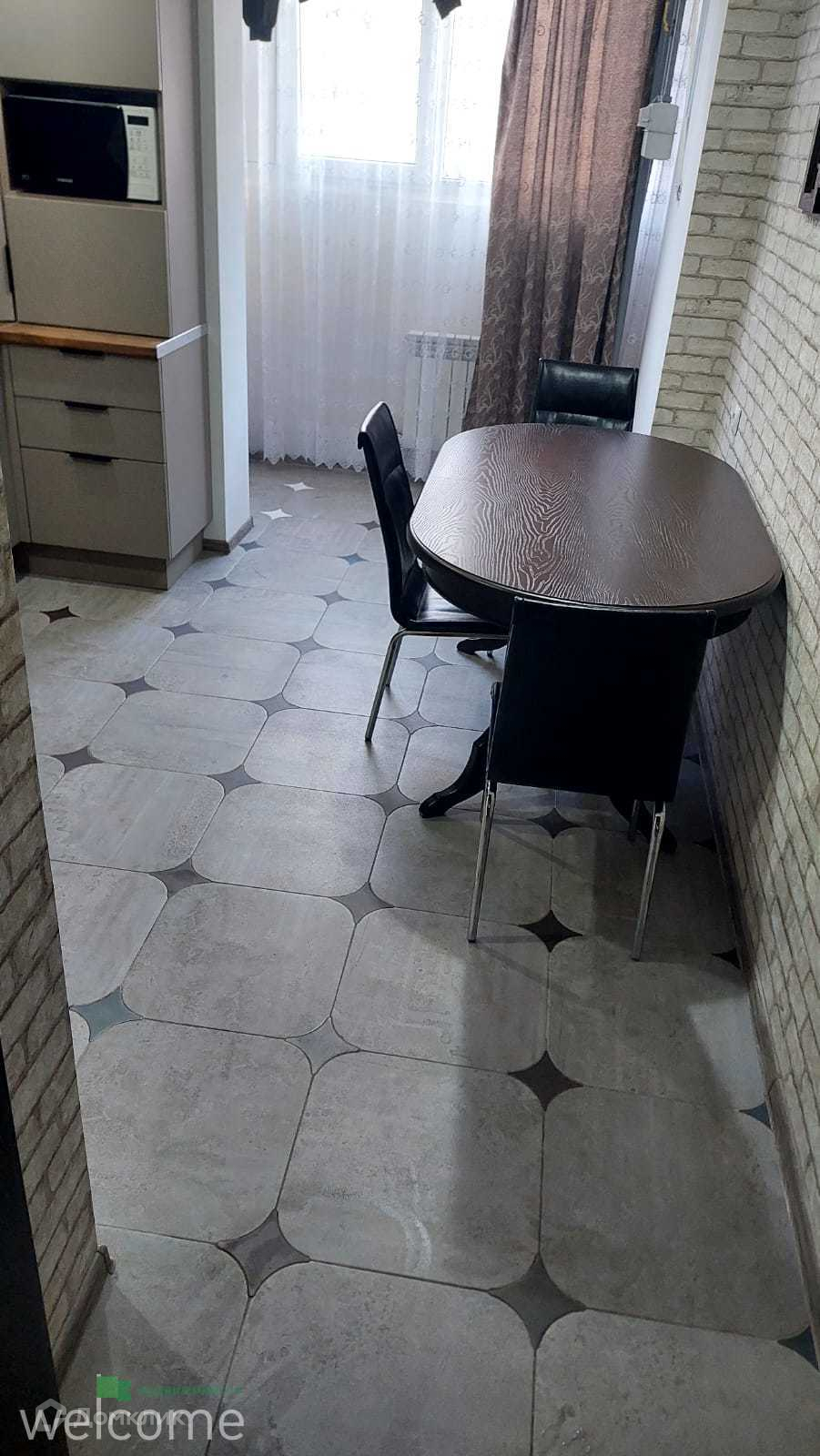 В зоне кухни и лоджии плитка.