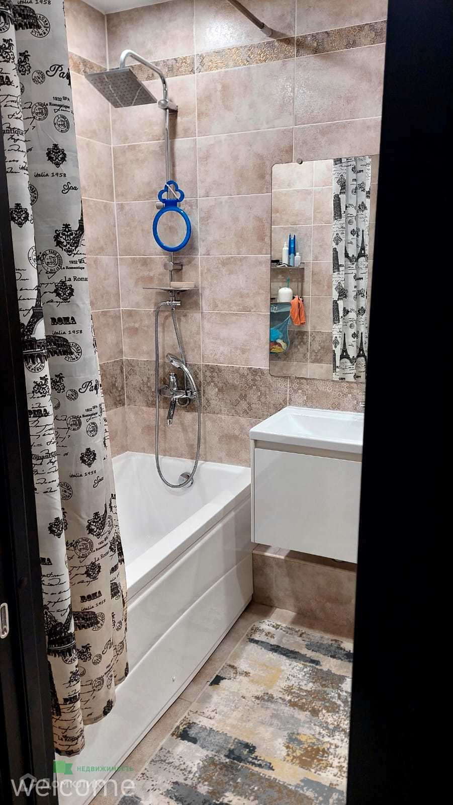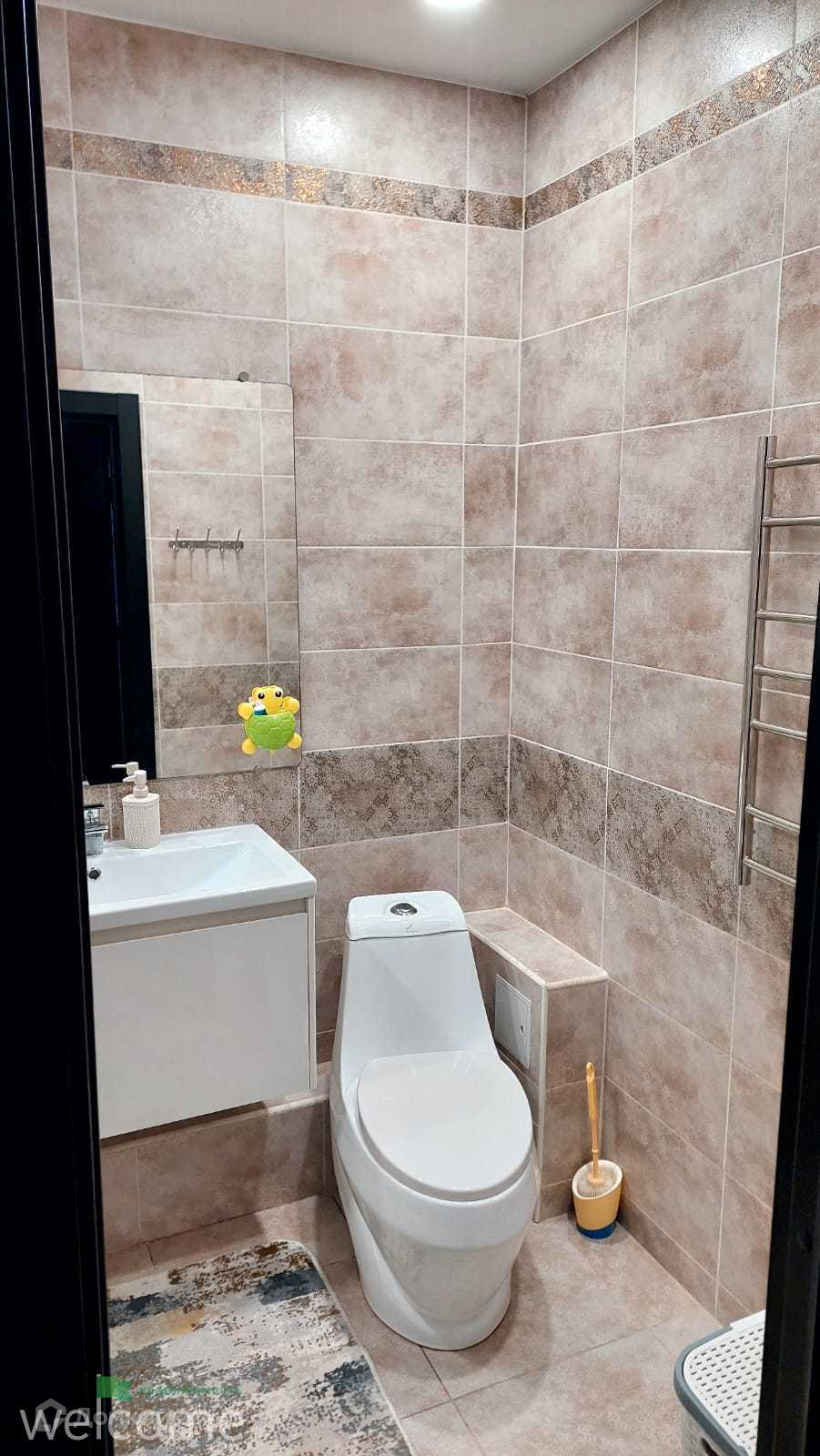 Санузел в кафеле, правильно распределено пространство. Преимущества: Высота потолка 2.8 метров.
