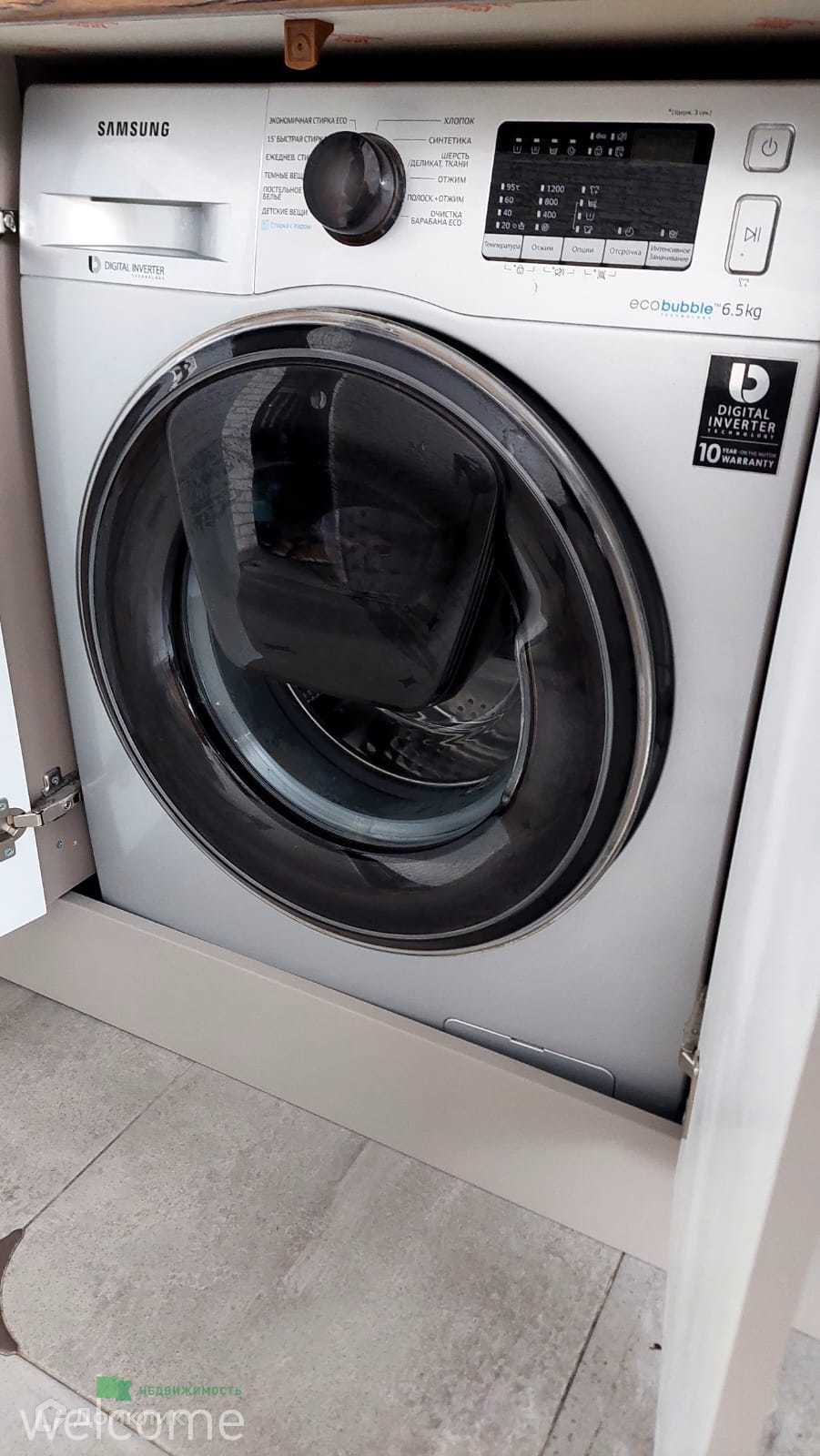 В квартире остаётся мебель (кухонный стол и стулья, раскладной диван, гардеробная, тумба для прихожей), и техника (холодильник с функцией Wi-Fi, быстрая заморозка, no frost, большая морозильная камера, стиральная машина Samsung с функцией дозагрузки, варочная панель и духовой шкаф)
