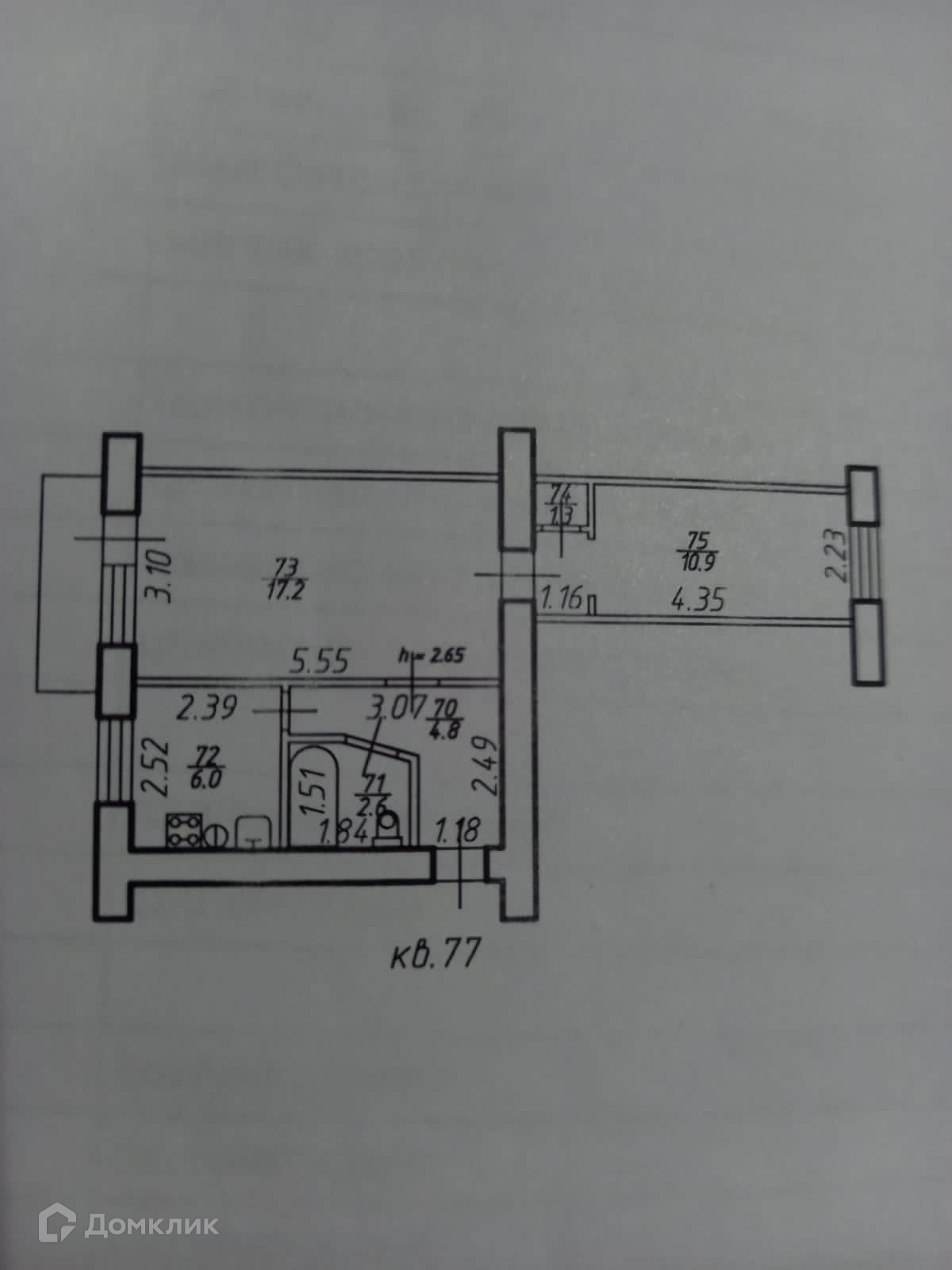 Общая площадь 45.2 м2