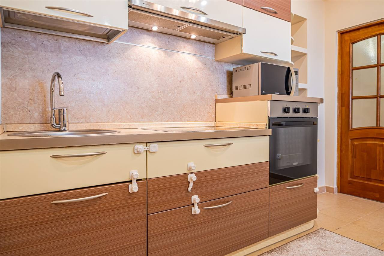 Кухня-гостинная 18 кв.м. и 2 изолированные комнаты, большая лоджия из кухни с отличным видом на город.
