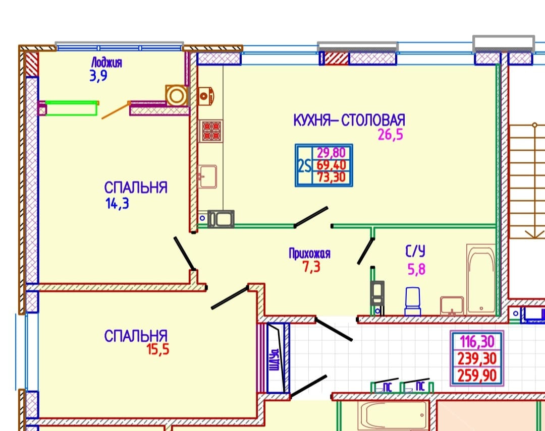 Общая площадь 73 м2