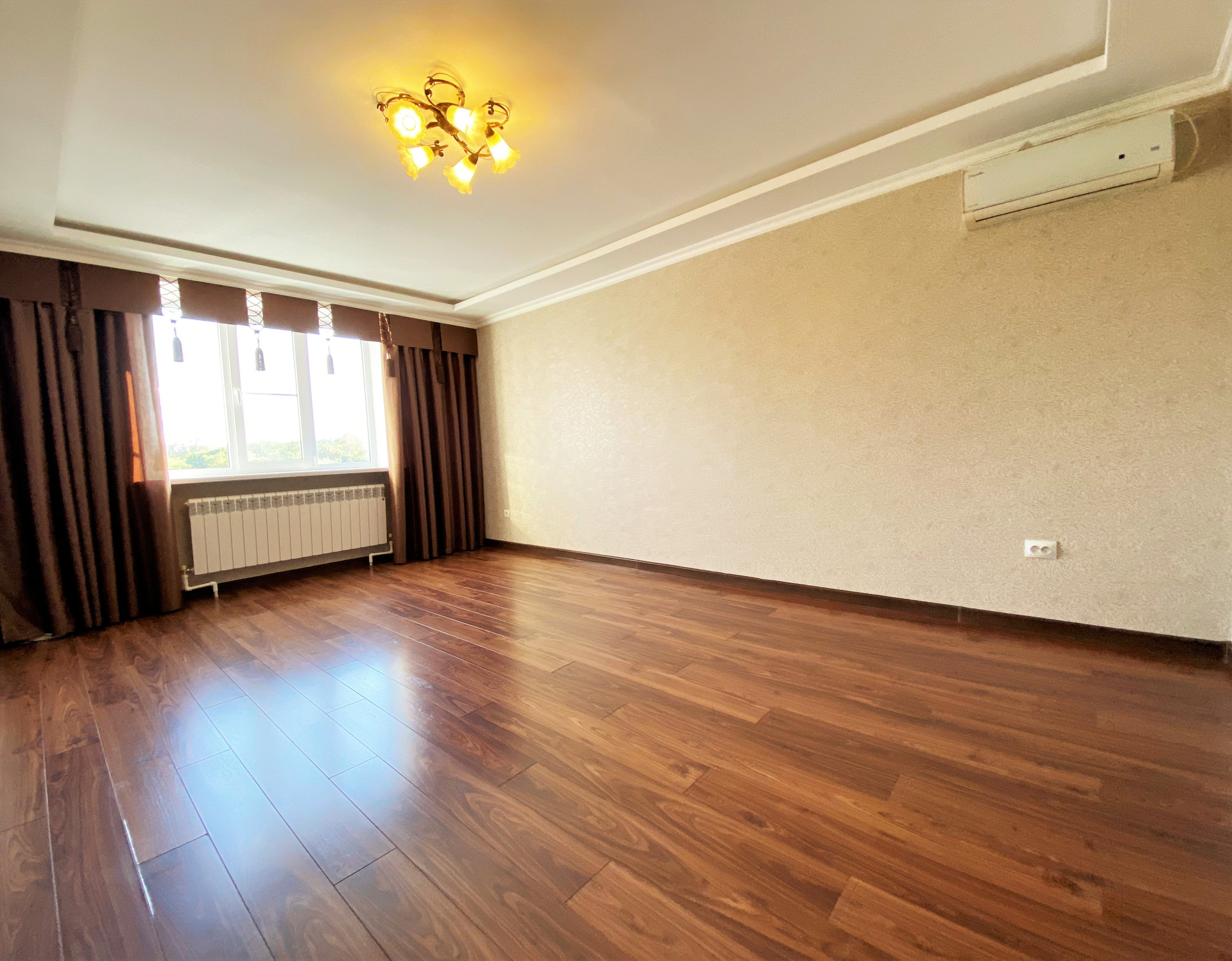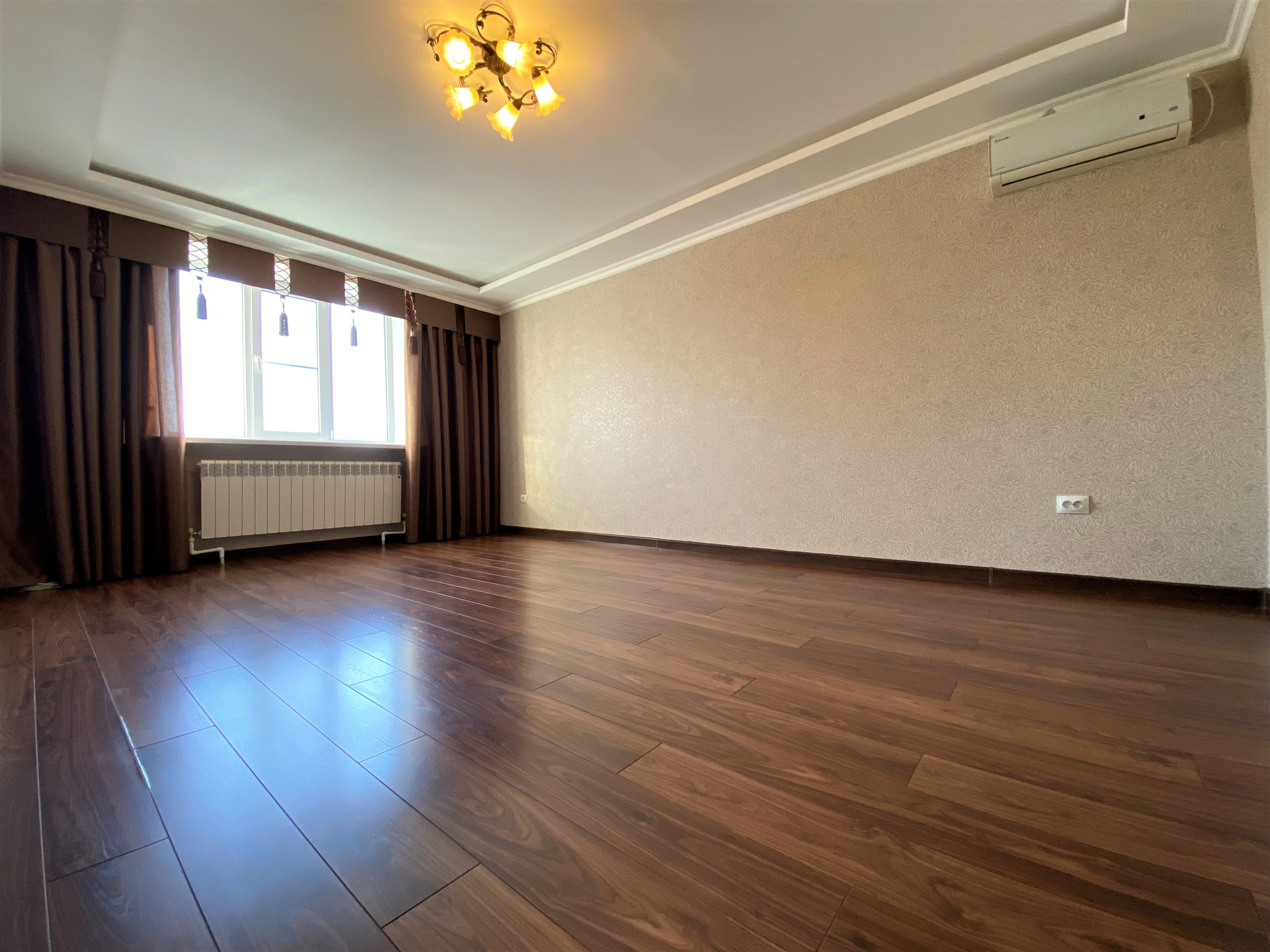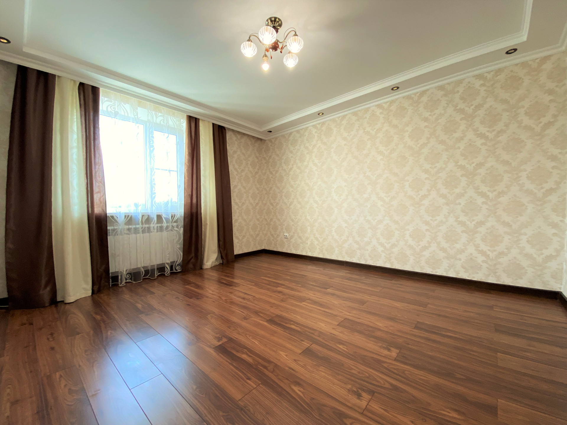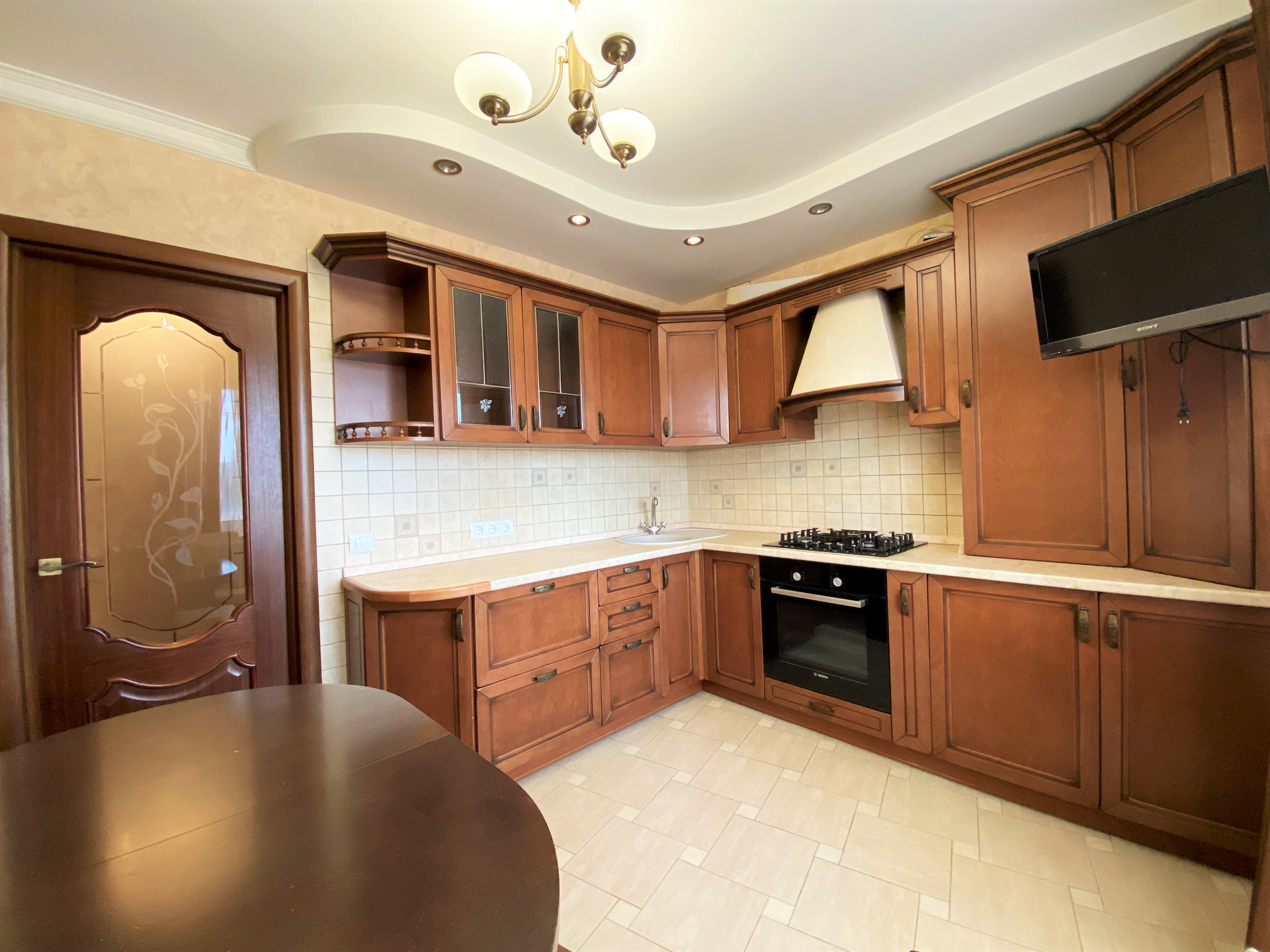 Ремонт- делался для себя. Потолок – двухуровневый с точечным освещением, в комнатах на полу бельгийский ламинат, в кухне выделена зона приготовления пищи - плиткой.
