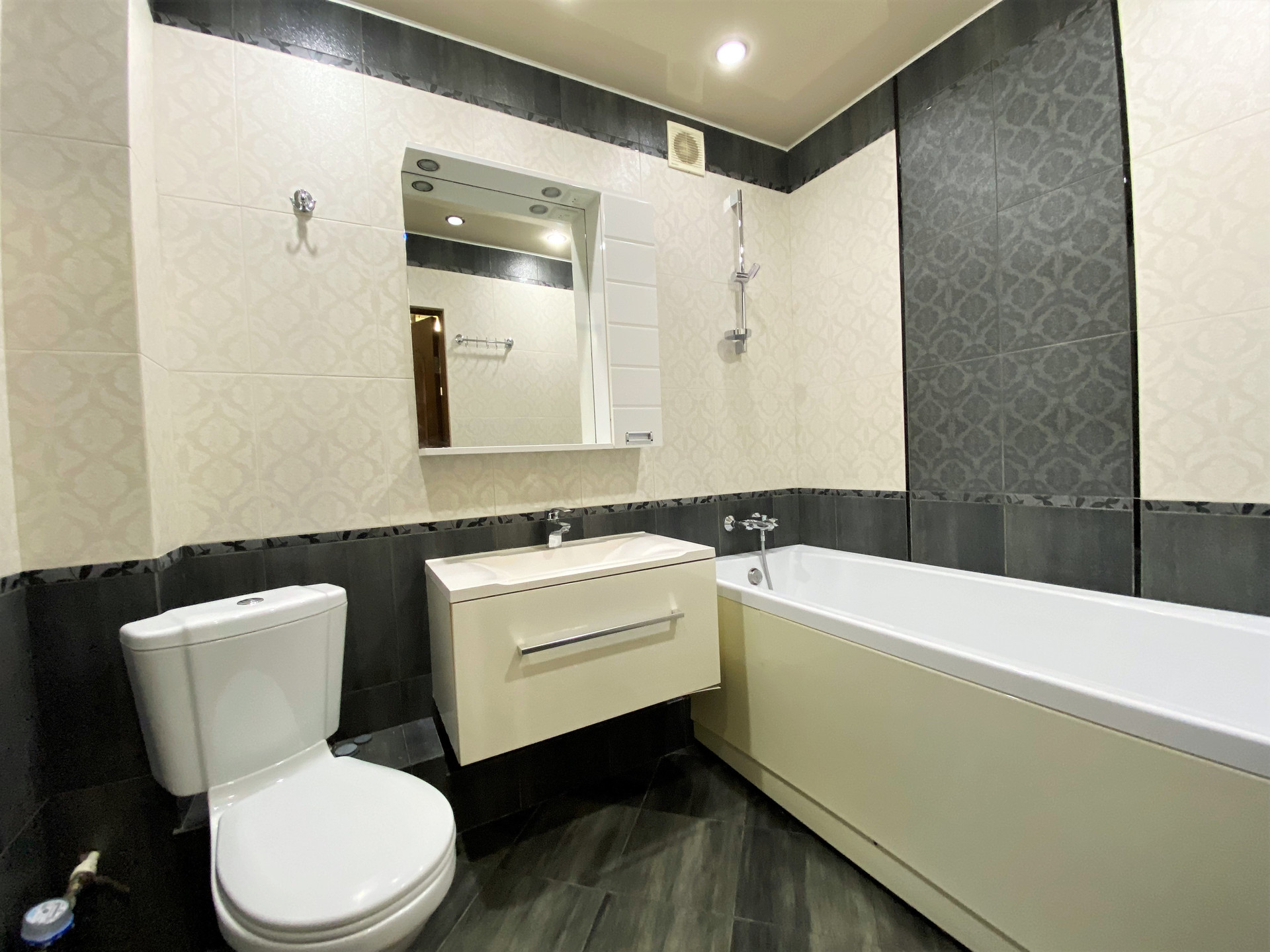 Качественные межкомнатные двери. Санузел – совмещенный в кафеле (Италия).