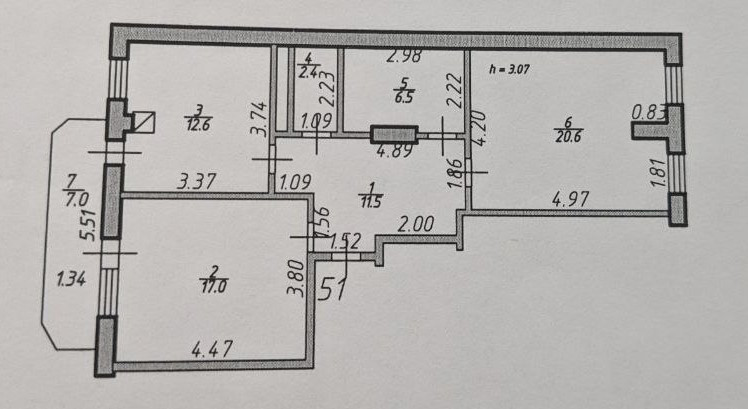 Высота потолков 3.1 м