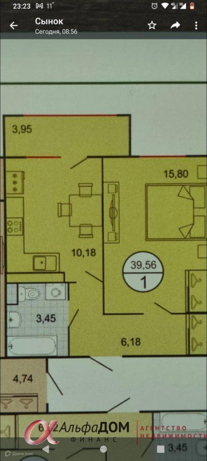 Общая площадь 39.56 м2