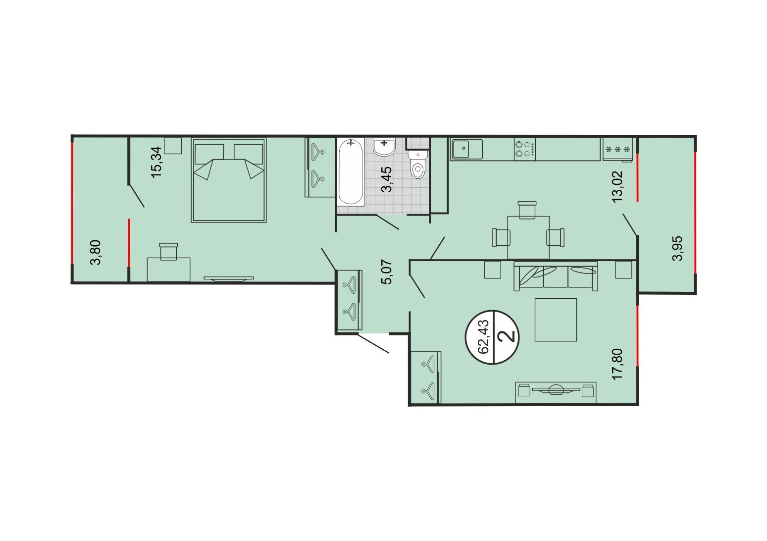 Общая площадь 63 м2