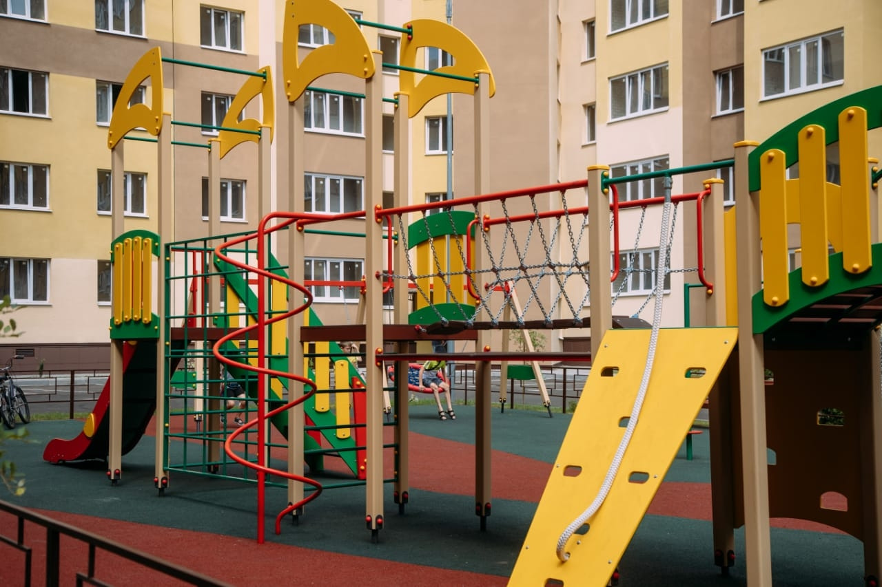 Двор с детской площадкой. Вся инфраструктура. Рядом строится новая школа.