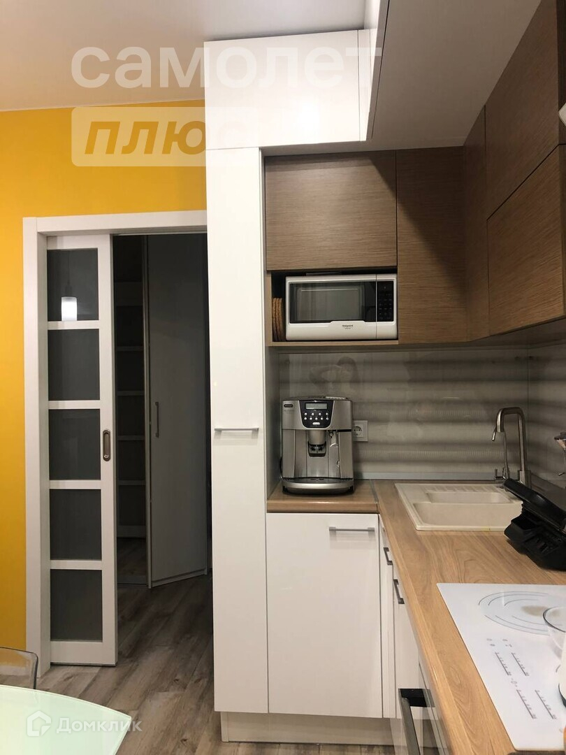 Стены в квартире покрыты стильными обоями и покрашены, пол устелен ламинатом и плиткой. Дизайнерский кухонный гарнитур с встроенной техникой, вещевой шкаф, прихожая группа, кондиционер, посудомоечная машина - остаются.