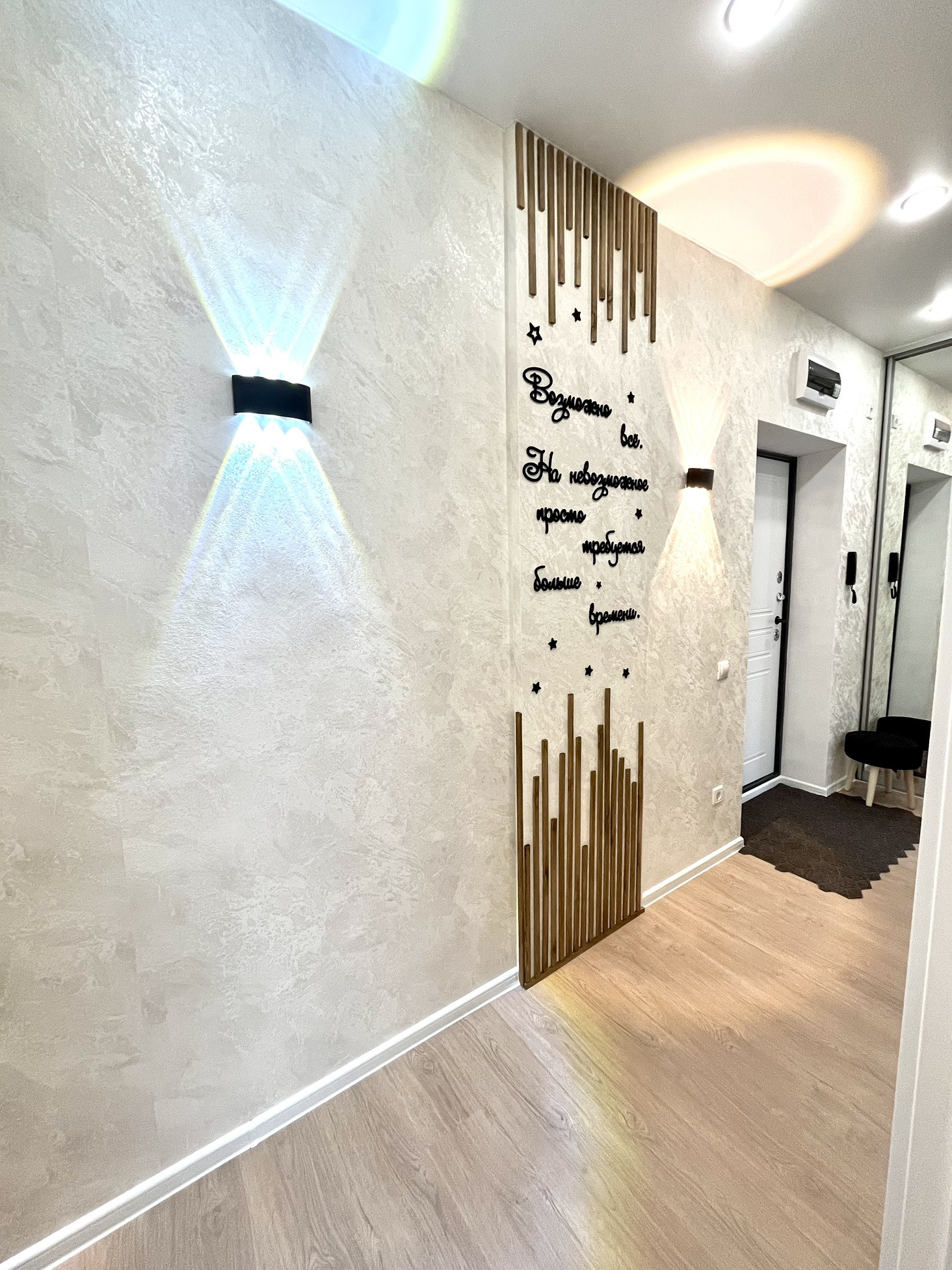 В квартире выполнен ремонт по дизайн проекту, эргономично использован каждый сантиметр пространства.