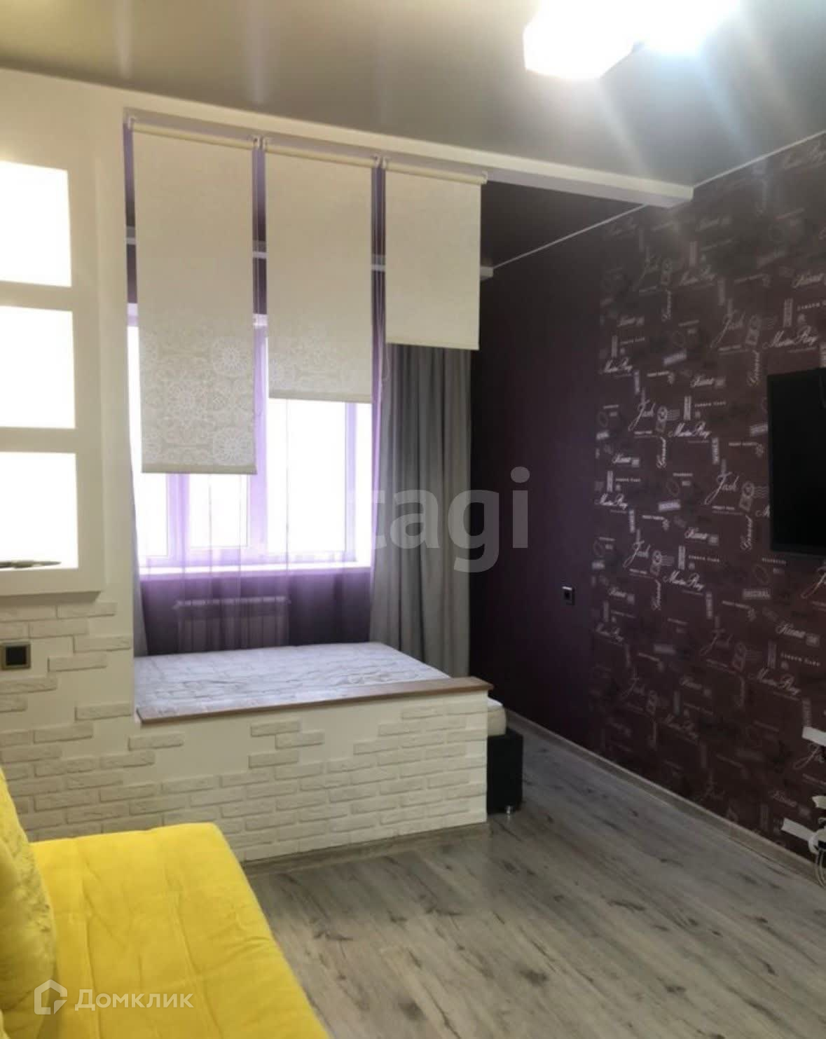 -спальная зона возле окна, двуспальная кровать, новый матрас Аскона