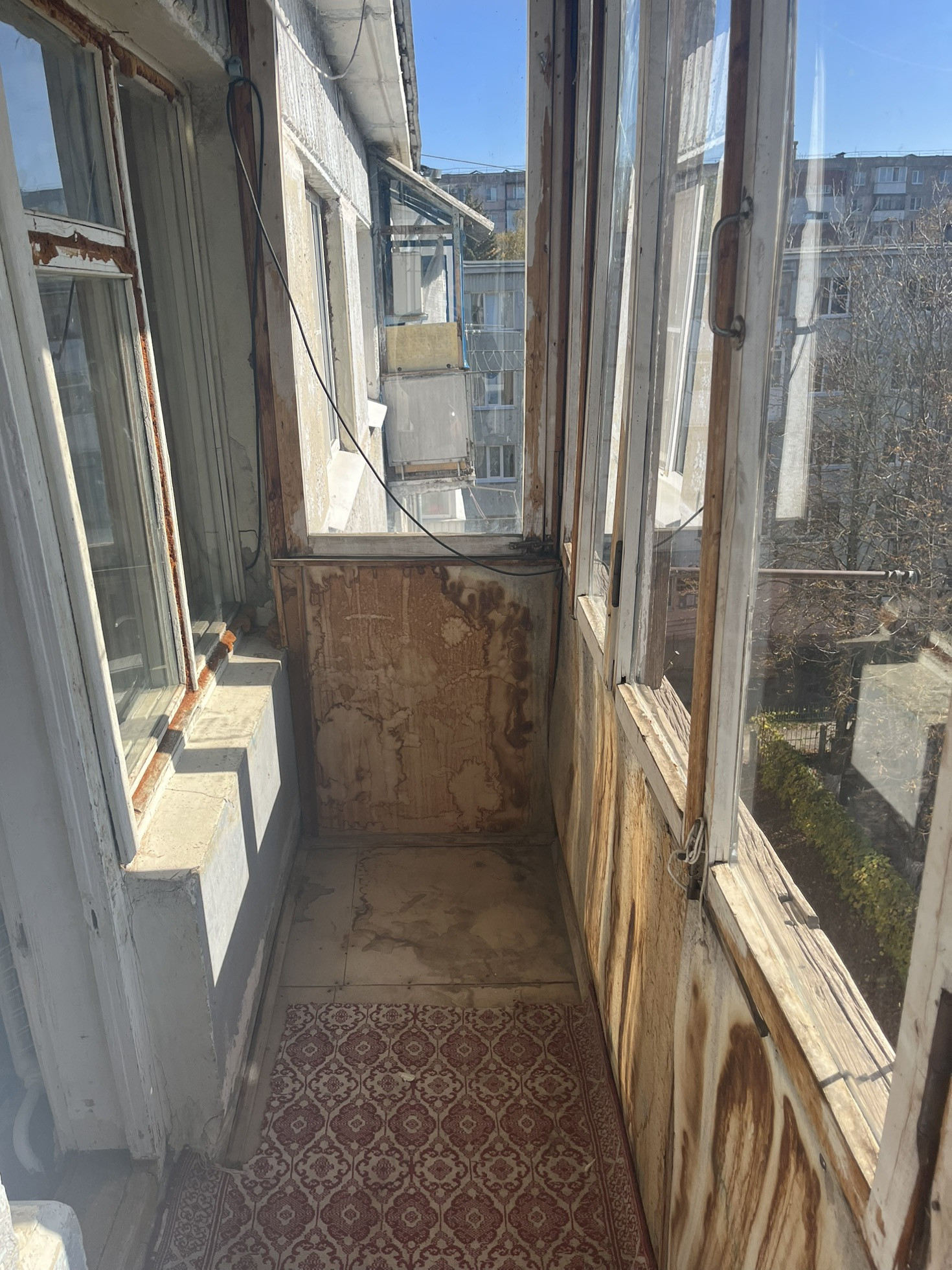 Квартира нуждается в ремонте. Окна и балкон столярка! Проблем с крышей нет и не было. Лифта нет.