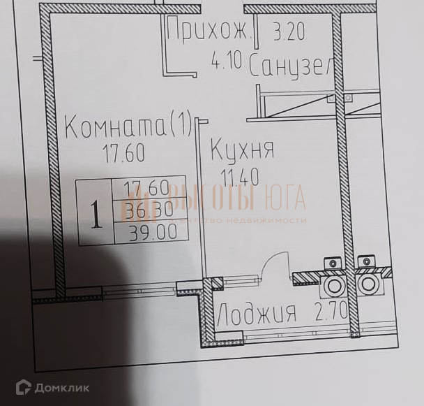Общая площадь 39 м2