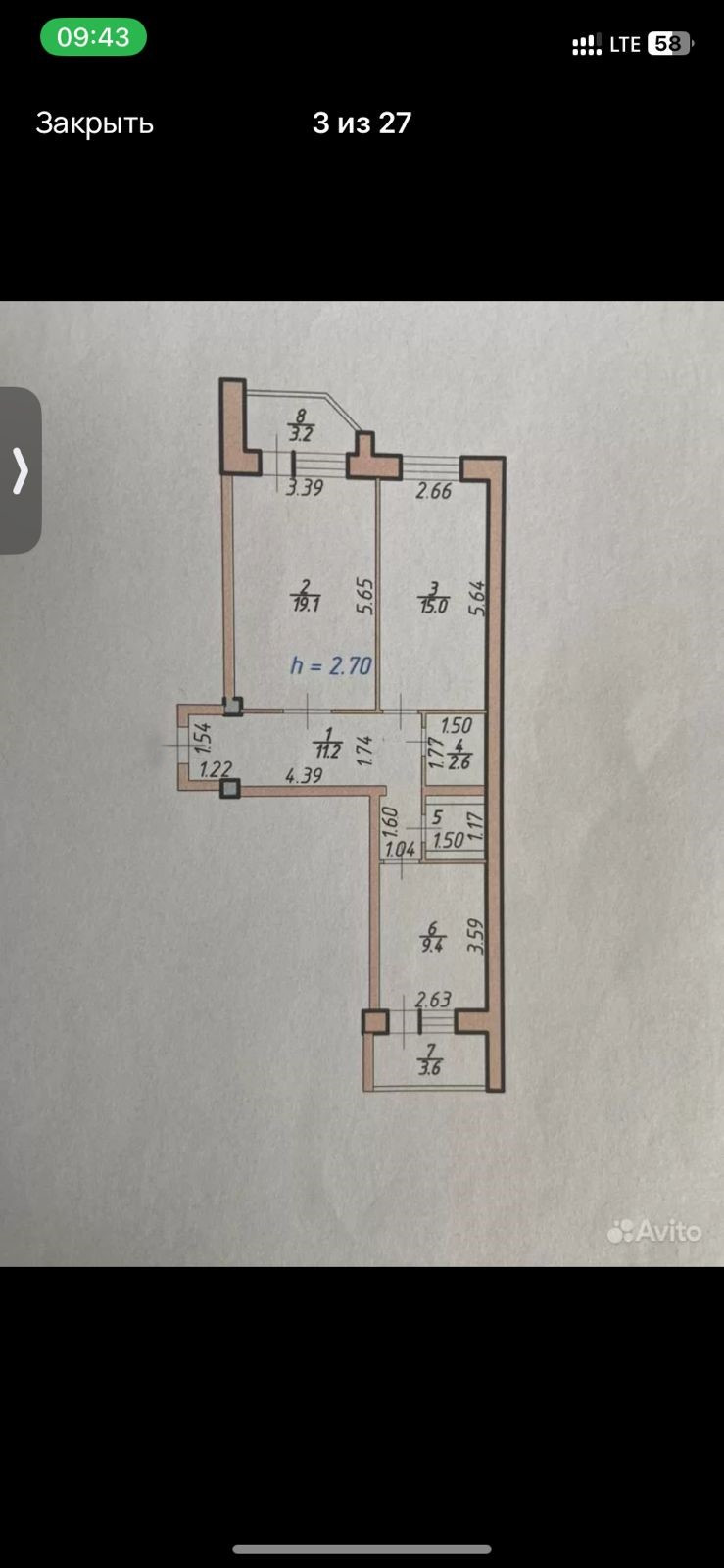 Высота потолков 2.7 м