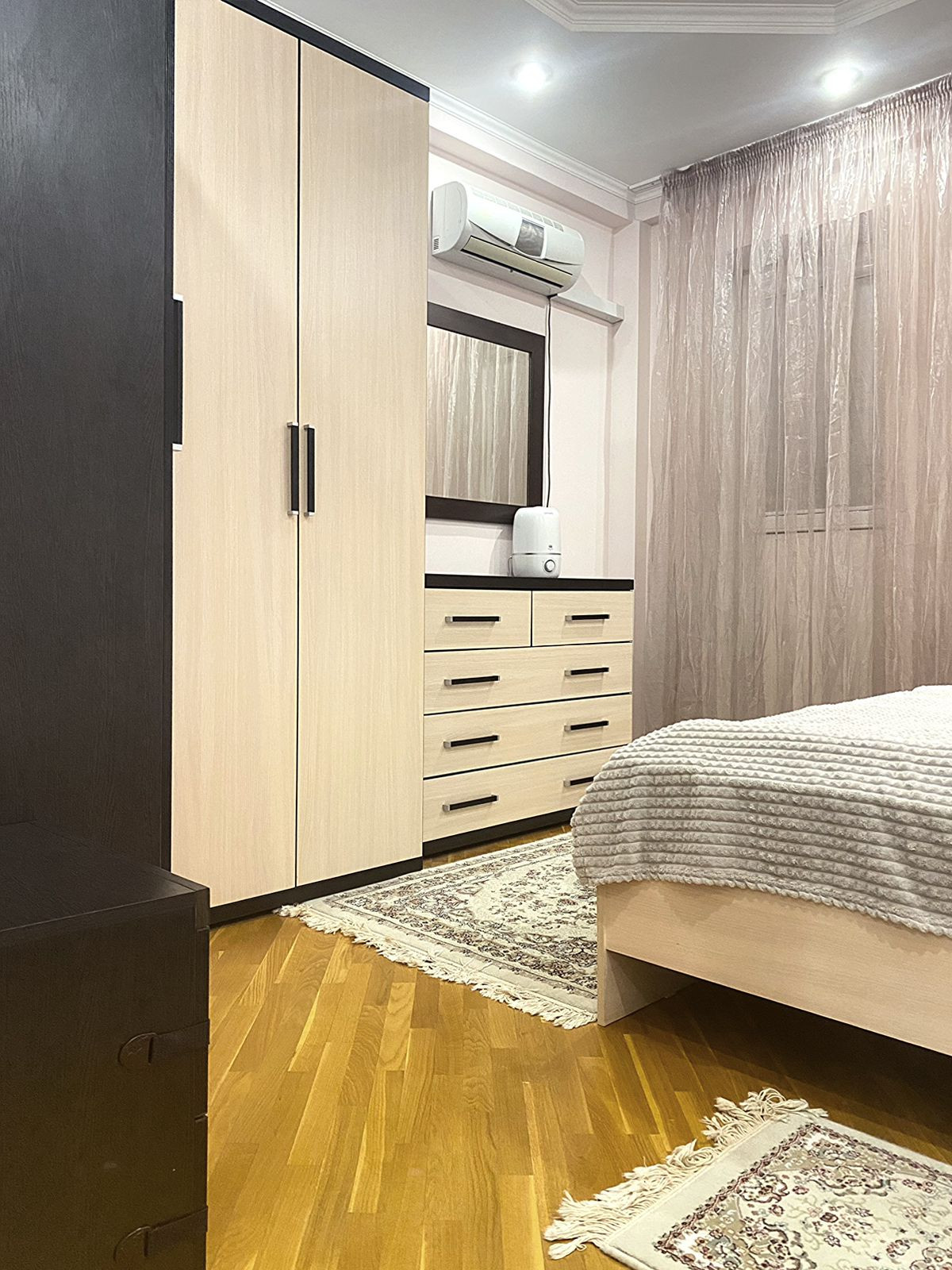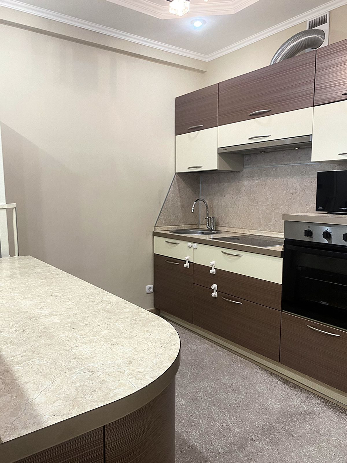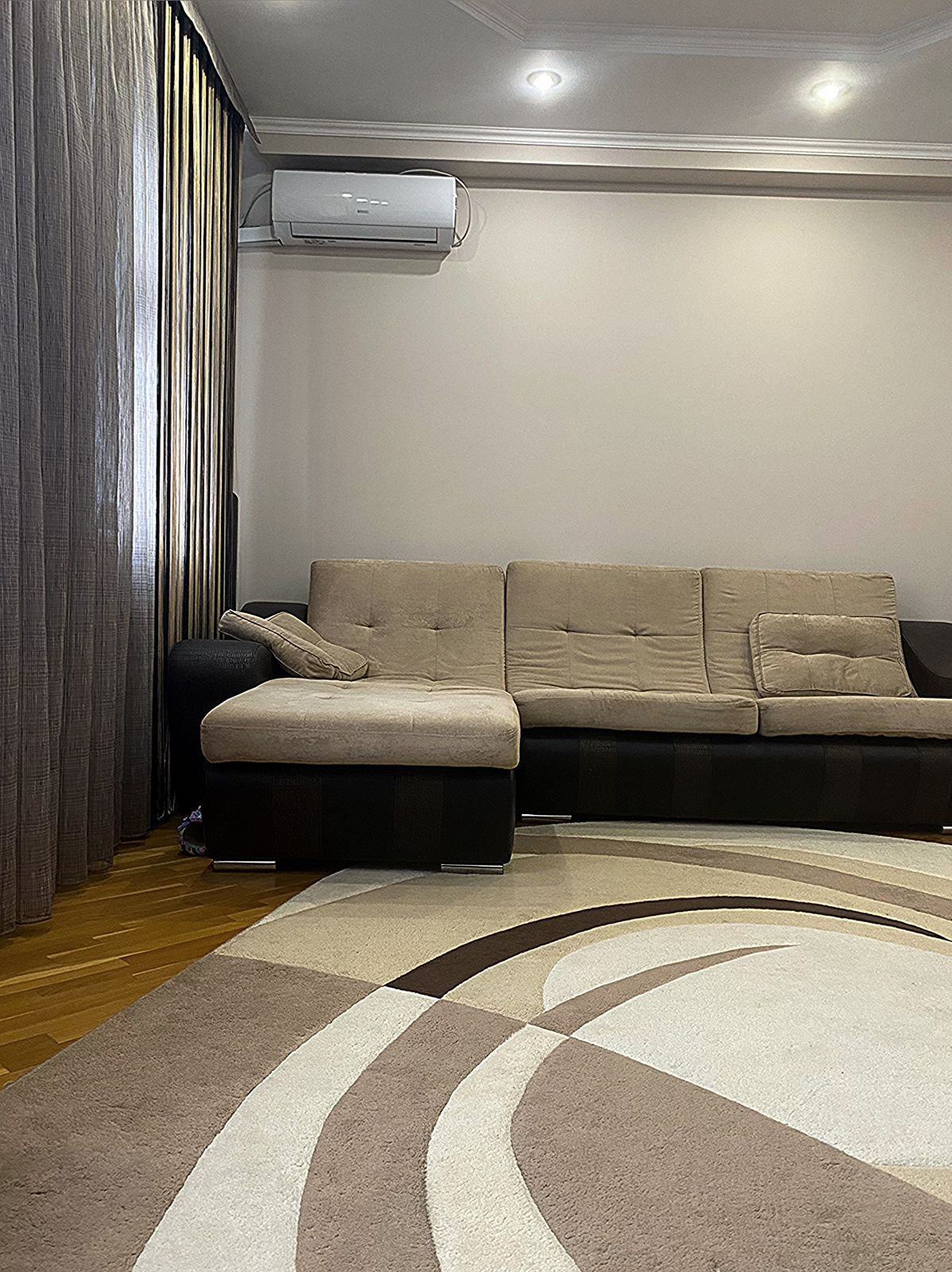 В квартире выполнен евро-ремонт, состояние отличное. На полу, ламинат, керамическая плитка. Стены окрашены в спокойные светлые тона, встроенное освещение, двух-уровневые потолки из ГКЛ. Квартира теплая, светлая. Отопление автономное. Удачная планировка: гостинная 20 кв. м, спальня, 14 кв. м, кухня-столовая 18 кв. м, поделена на зоны, при желании можно обратно объединить, есть кладовое помещение и два застекленных и полностью облагороженных балкона. Остается вся мебель и почти вся техника. Дополнительных вложений не требует.