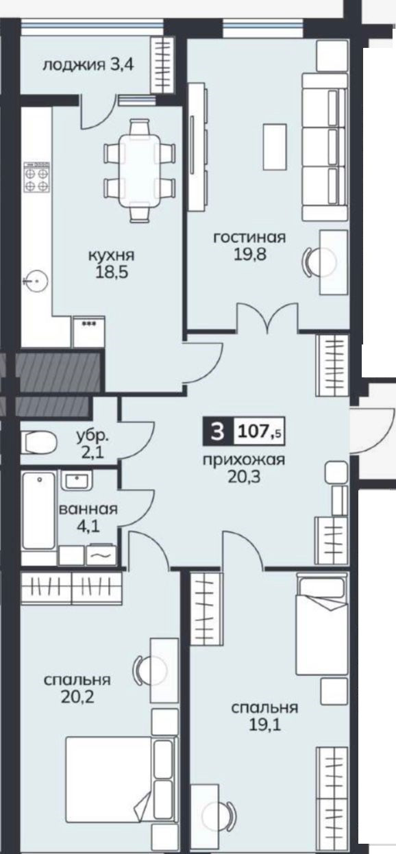 Общая площадь 107.5 м2