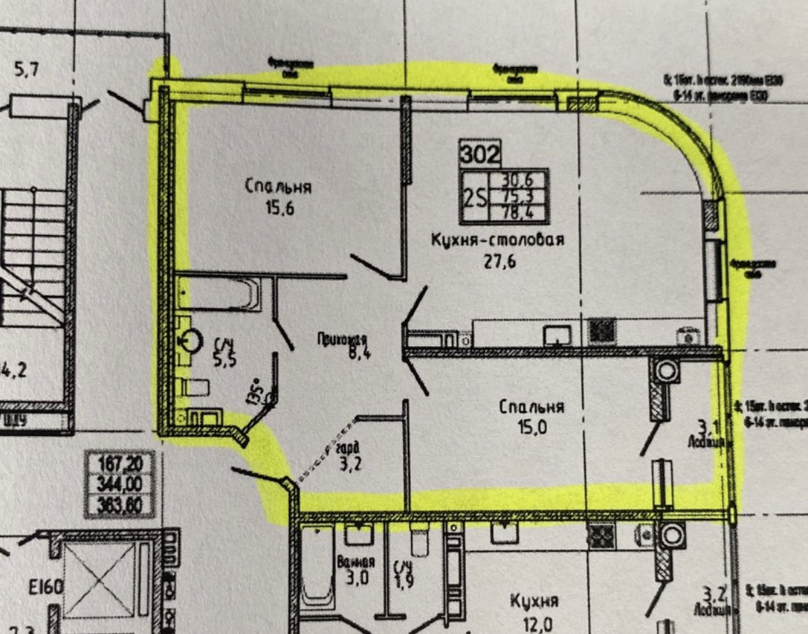 Общая площадь 78.4 м2