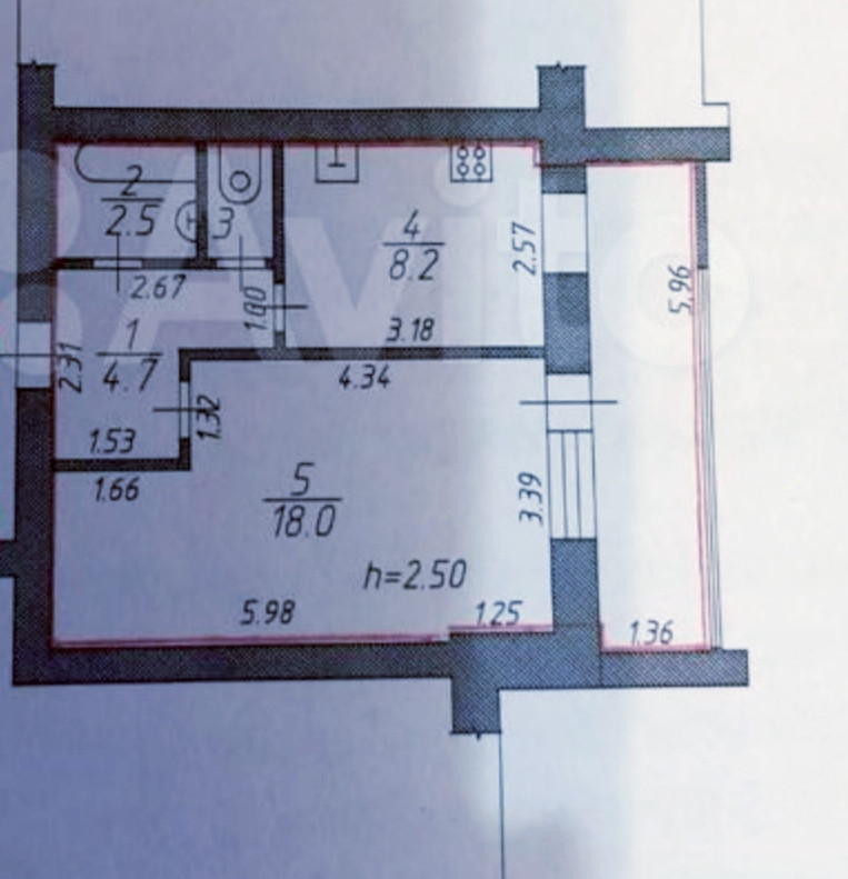 Общая площадь 43 м2