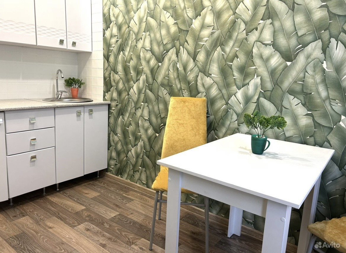 На полу ламинат, на стенах обои, все новое
