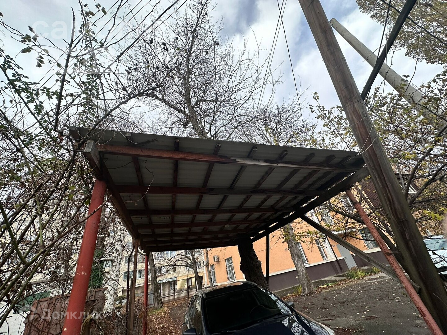 парковка открытая, во дворе навес,