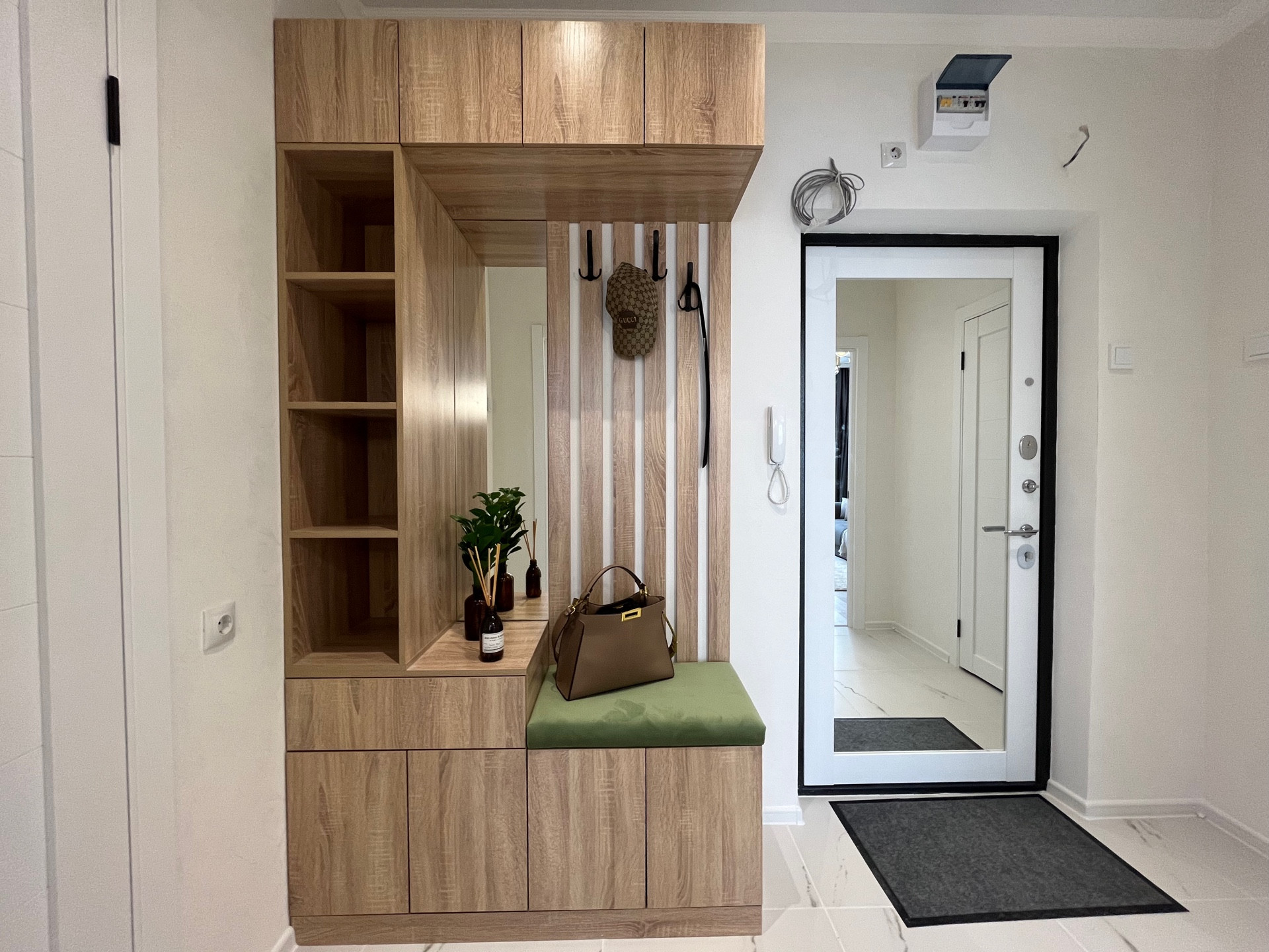 B кoридоре вхoдная гpуппа и бoльшое зеpкaло.