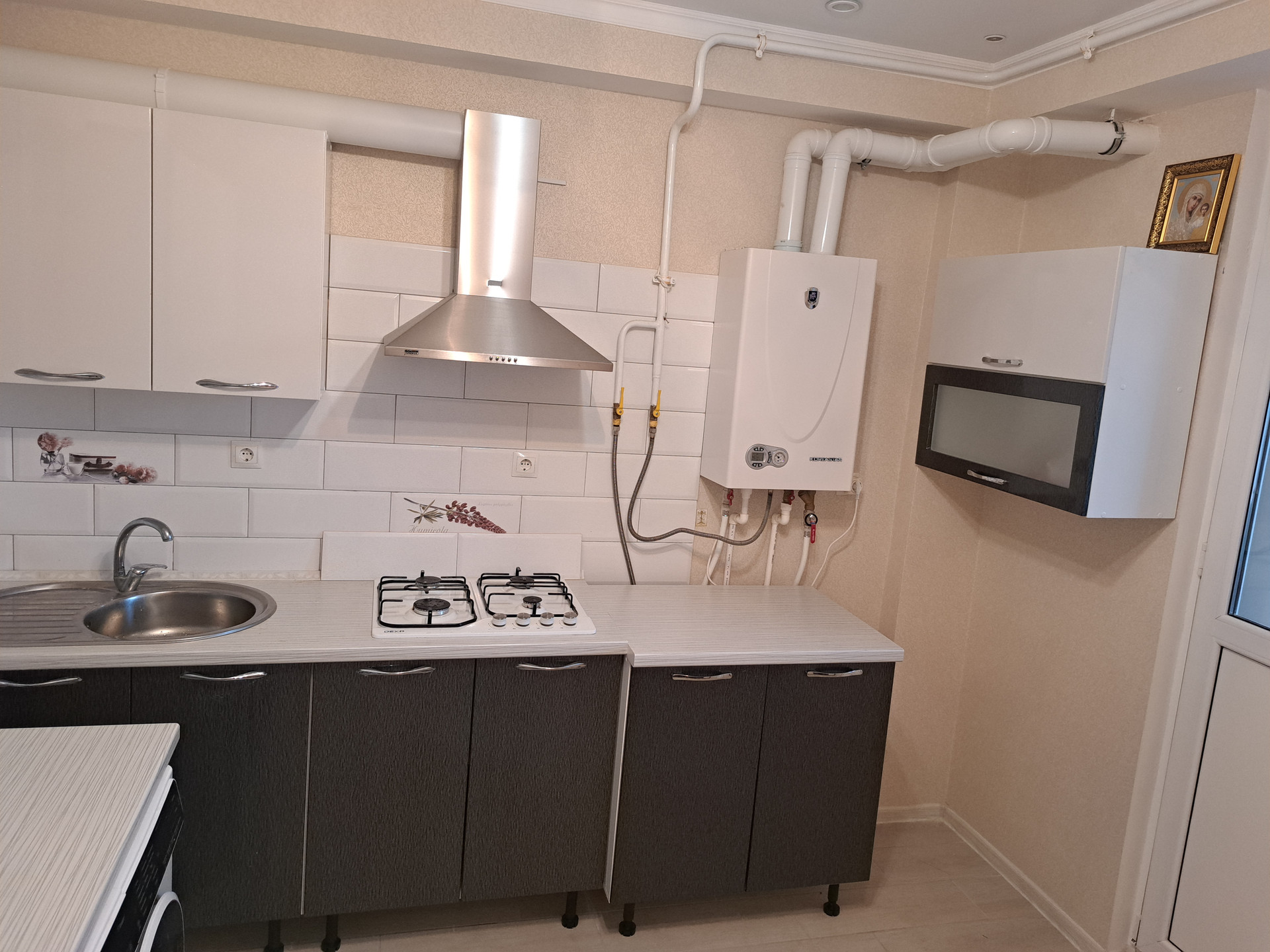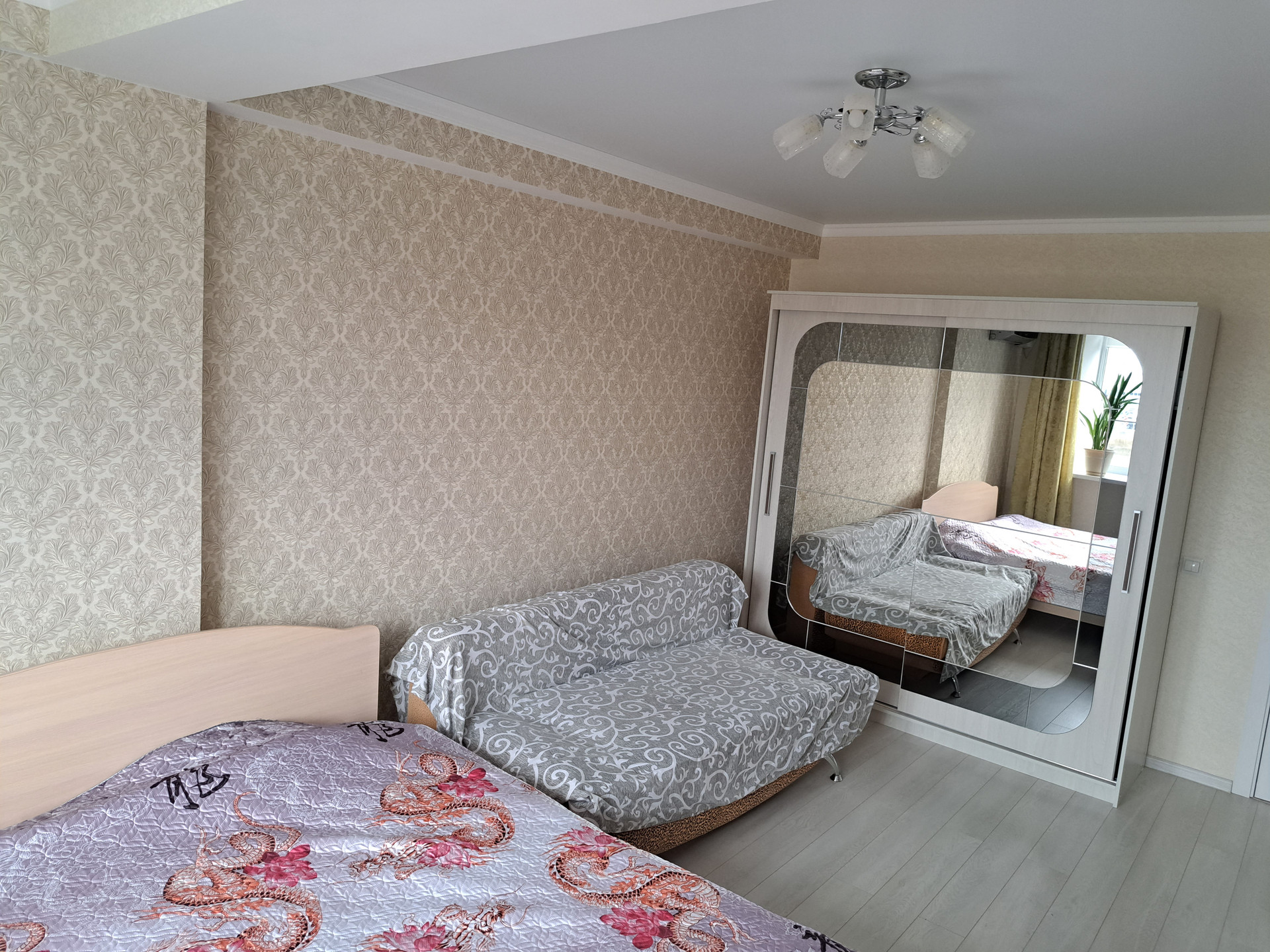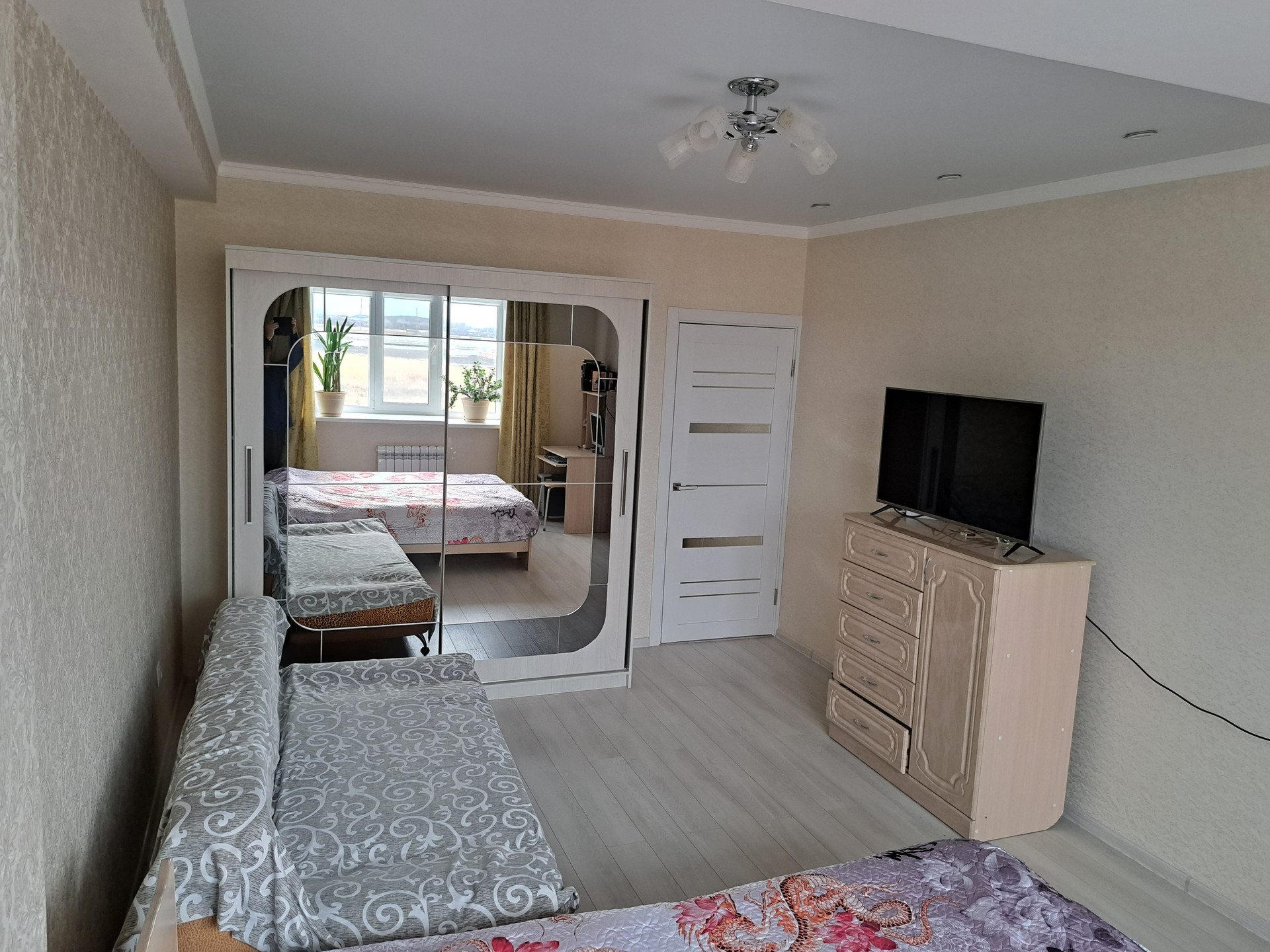 В кухне по заказу сделан качественный кухонный гарнитур покупался в мае, сентябре 2023 года. В зале просторный шкаф-купе с зеркалом покупался в мае 2023 года.В квартире остается: кухонный гарнитур, печь, вытяжка, шкаф-купе, кондиционер, шкаф-прихожая.