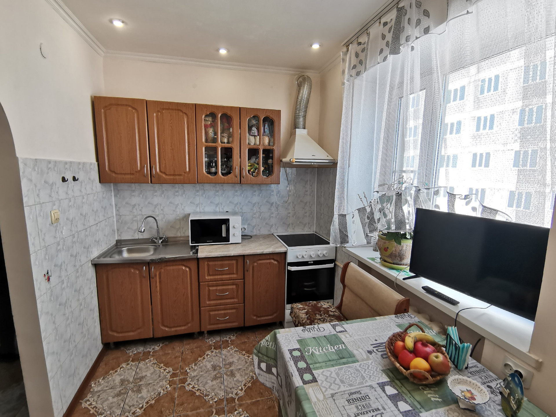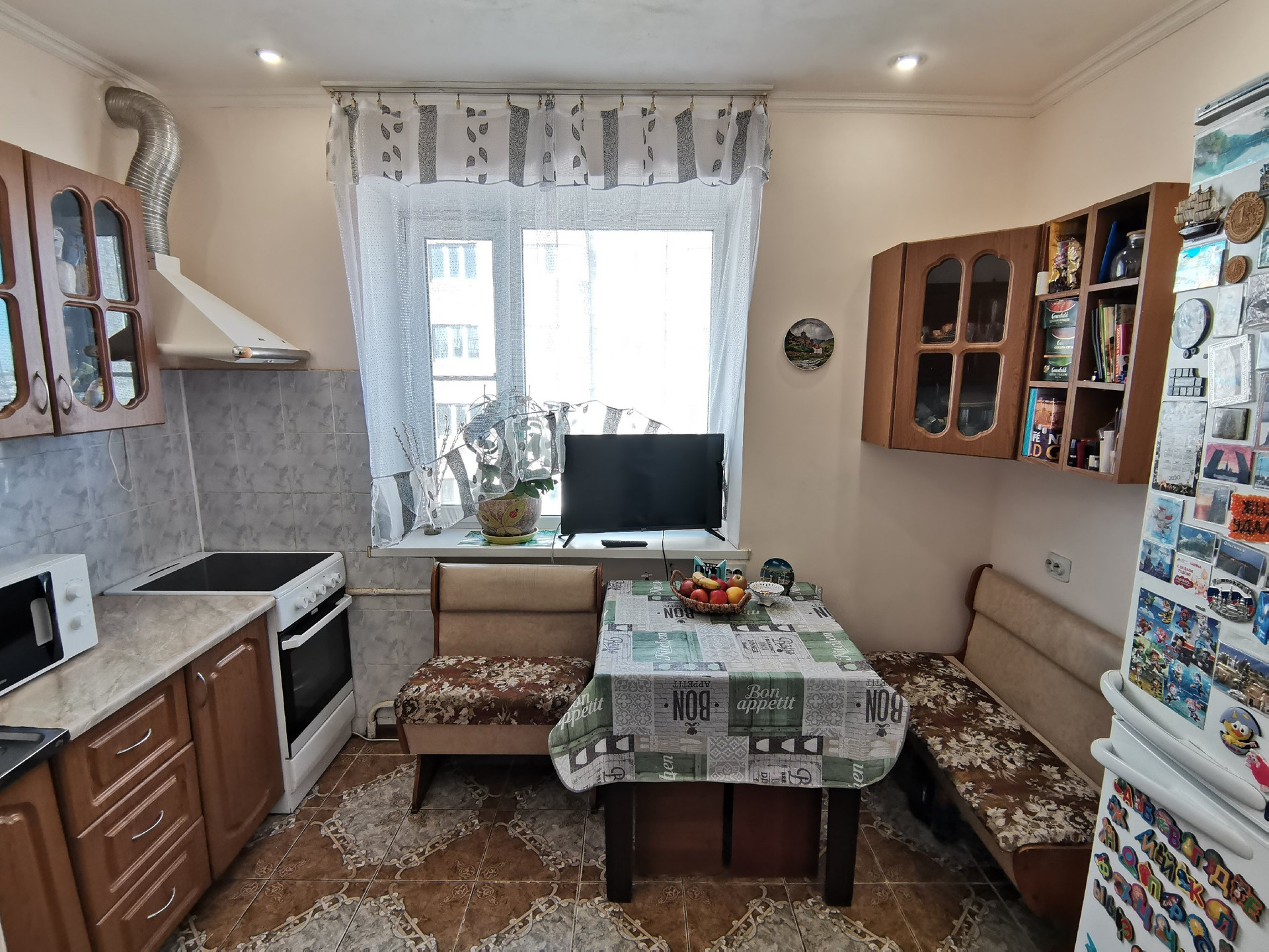 + ОСТАЕТСЯ МЕБЕЛЬ И ТЕХНИКА – кухонный гарнитур, электроплита и вытяжка, шкаф, прихожая, стенка, шкаф-купе.