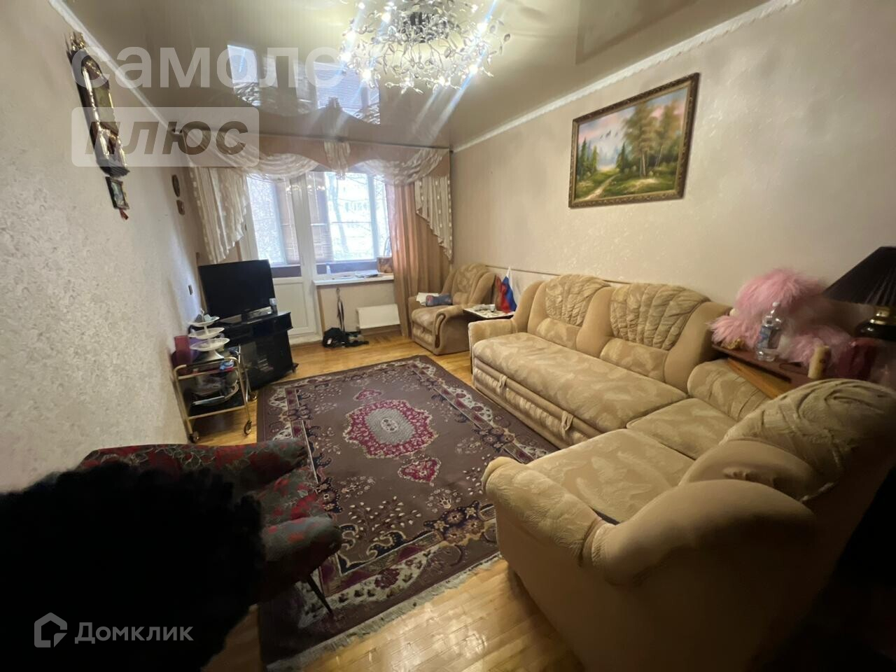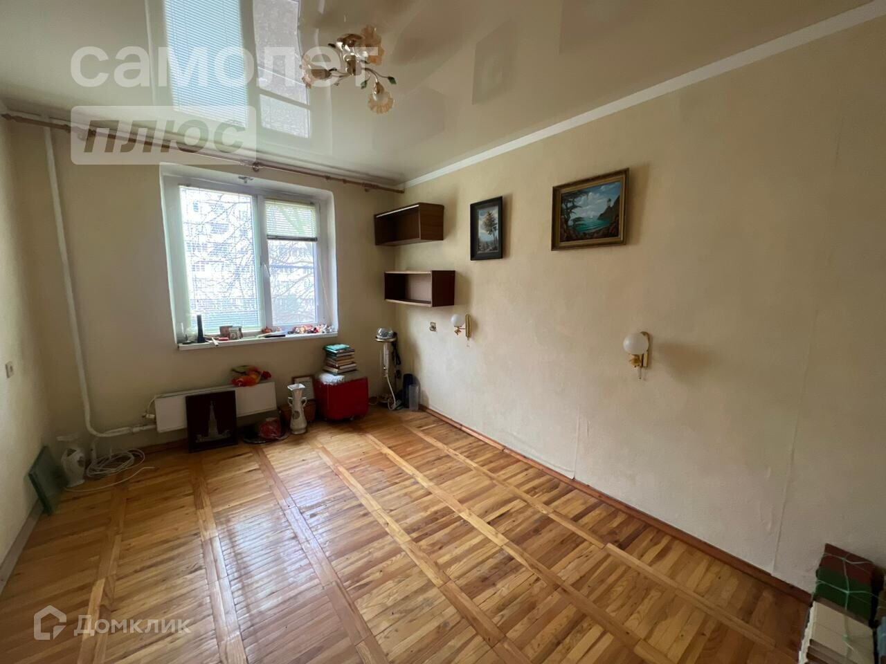 В квартире выполнен косметический ремонт: натяжные потолки, окна-ПВХ, покрытие пола - паркет, на стены поклеены обои.