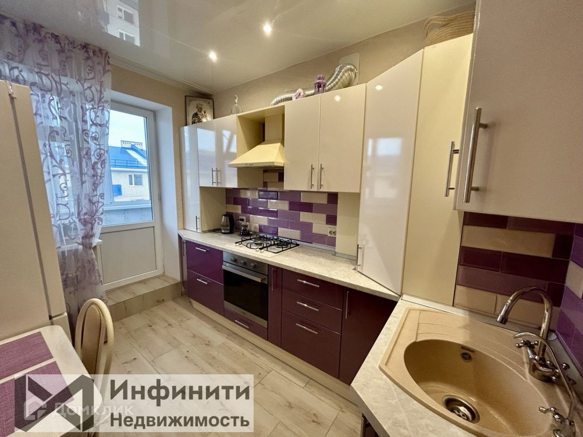 Остаются встроенная кухня, встроенная бытовая техника: варочная панель, духовой шкаф и вытяжка. В прихожей просторный встроенный шкаф-купе.